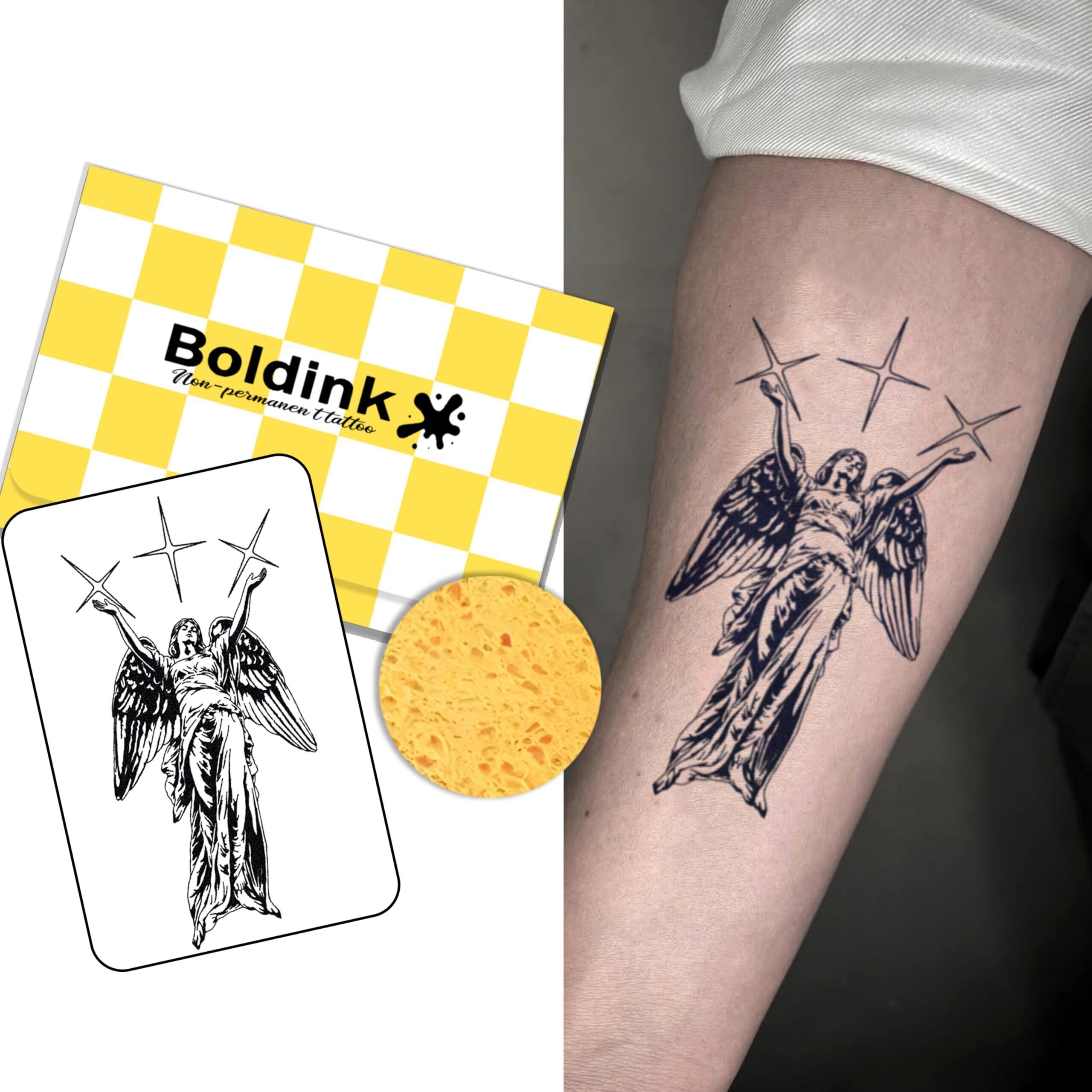 【人気商品】Boldink タトゥーシール 半永久的 ジャグアタトゥー 2枚セット 2週間 長持ち 防水 刺青シール 入れ墨シール 男性 女性 メンズ レディース クロス 天使 | allstore2