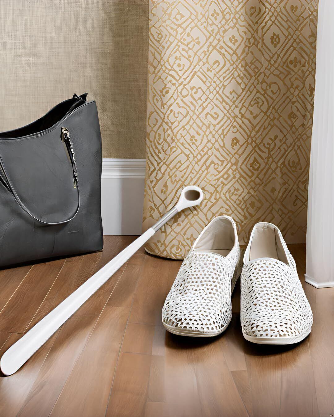 丈夫で柔軟性のある樹脂を使用したシューホーン(靴ベラ)です。グリップ部分にアルミパイプを使用し、滑りにくくしました。豊富なカラーバリエーション。約50cm。