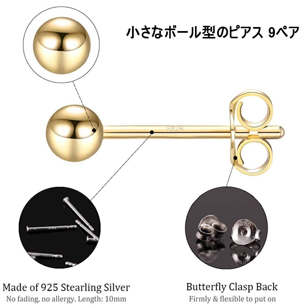 【サイズ】9ペアセット(ポスト長さ:約10㎜ ポストの幅:約0.7㎜)シルバー色: 3ペア(3mm 4mm 5mm) ・ゴールド色: 3ペア(3mm 4mm 5mm) ・ブラック色: 3ペア(3mm 4mm 5mm)。