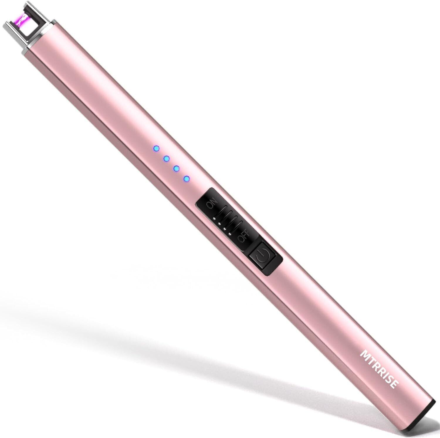【2022最新】プラズマライター 電子ライター 点火ライター 電気 USBライター 電量表示 充電式 火起こし 無炎 防風 スリム ろうそく BBQ お墓参り アウトドア用ライター (ローズゴールド)