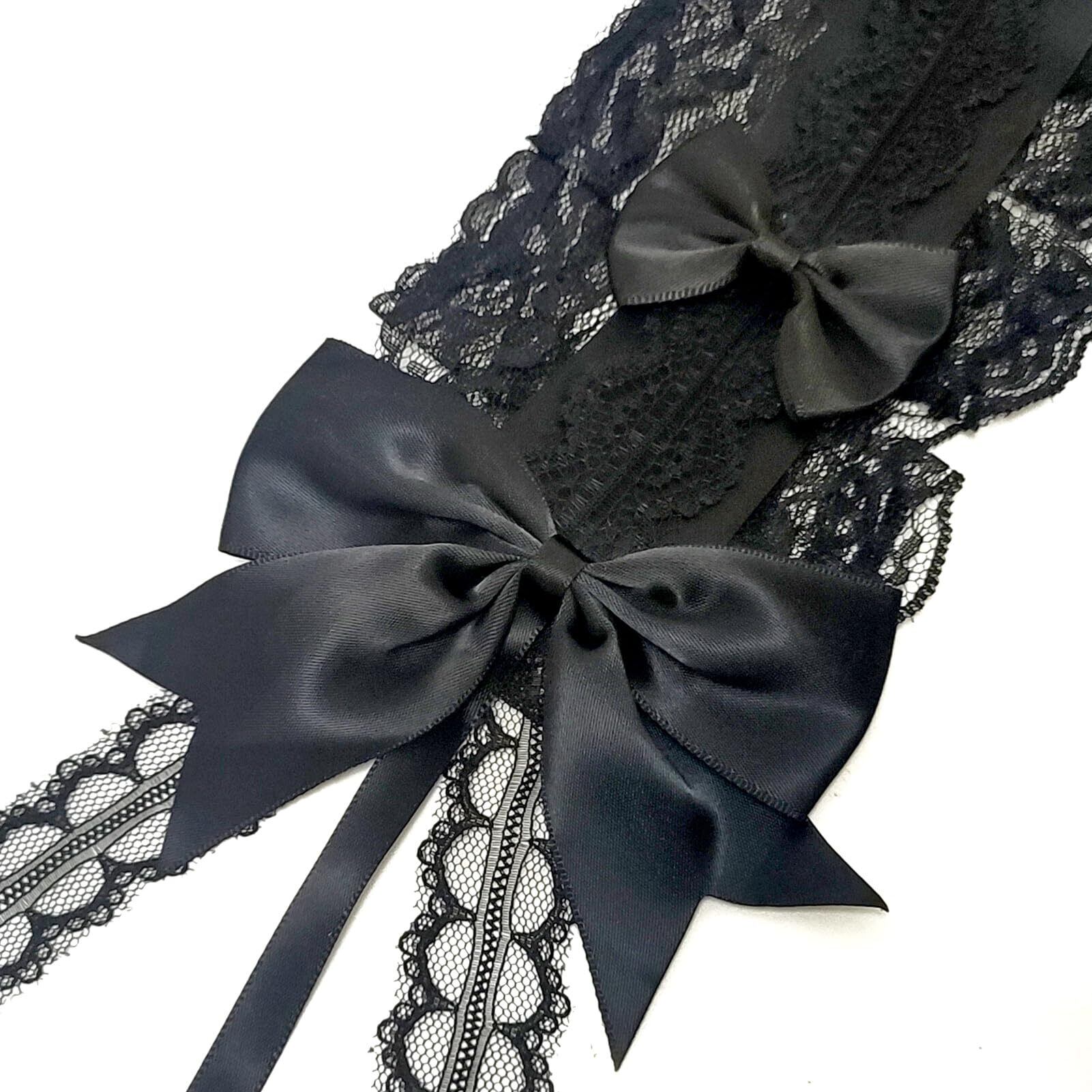Sitengle ヘッドドレス ロリータ 黒 ハロウィン ゴスロリ 髪飾り ハロウィンアクセサリー 悪魔の翼 3WAY カチューシャ レース 黒 リボン 蝶結び ヘアクリップ付き かわいい 萌え キュート メイドカフェ lolita コスプレ パーティー (黒いリボン)