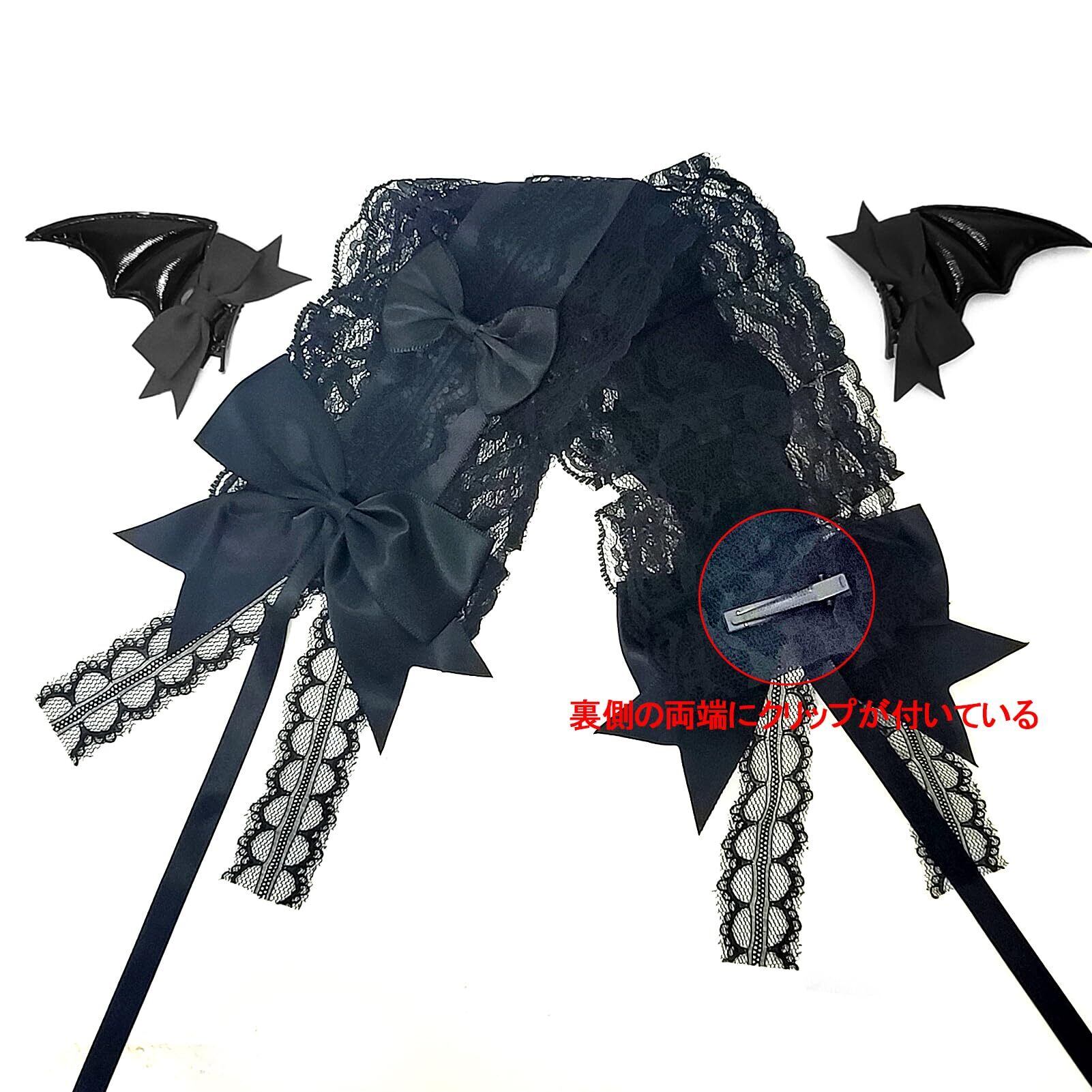 【セット内容】ゴスロリ ヘアバンド(約32cm*9cm。)*1、 悪魔の翼の蝶結びヘアクリップ(約6.5cm*7cm)*2。