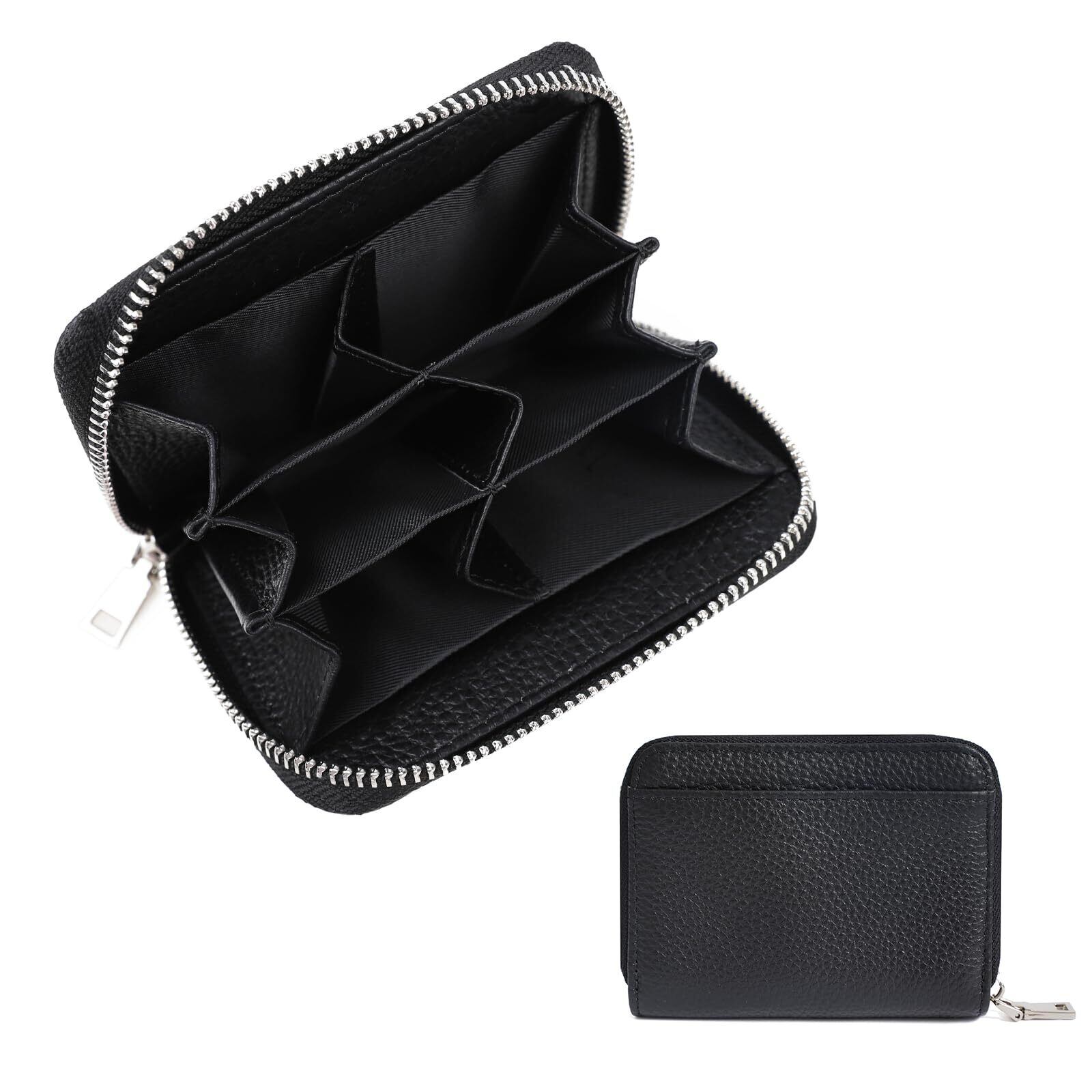 [imeetu] ミニ財布 コインケース キーケース 小銭入れ 6つの仕切り 本革 コンパクト 軽量 便利 小さい 牛本革 多機能 小物入れ シンプル カジュアル 男女兼用(ブラック)