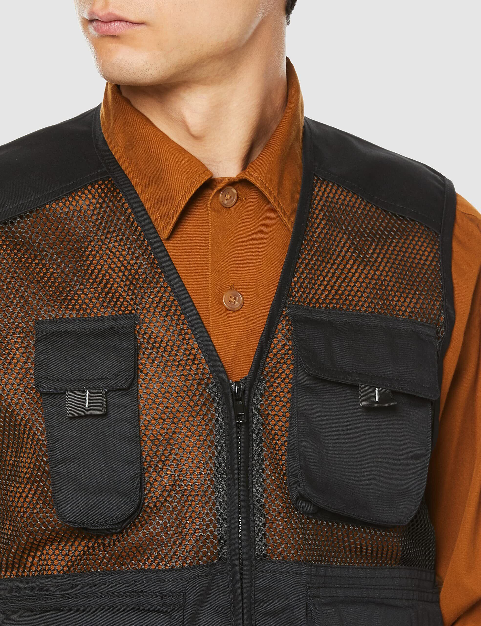 通気性抜群のメッシュベスト。前面には機能的にポケットを配置しながらもメッシュをふんだんに取り入れ、涼しさを確保しました。収納量がしっかり取れるマチ付ポケットを採用し、中の物が落ちにくいマジックテープ開閉のフラップが付いています。背中部分は通気性を重視し全面メッシュで仕上げました。暑い季節の作業からレジャー・フィッシングまで、多用途にお使いいただけます。