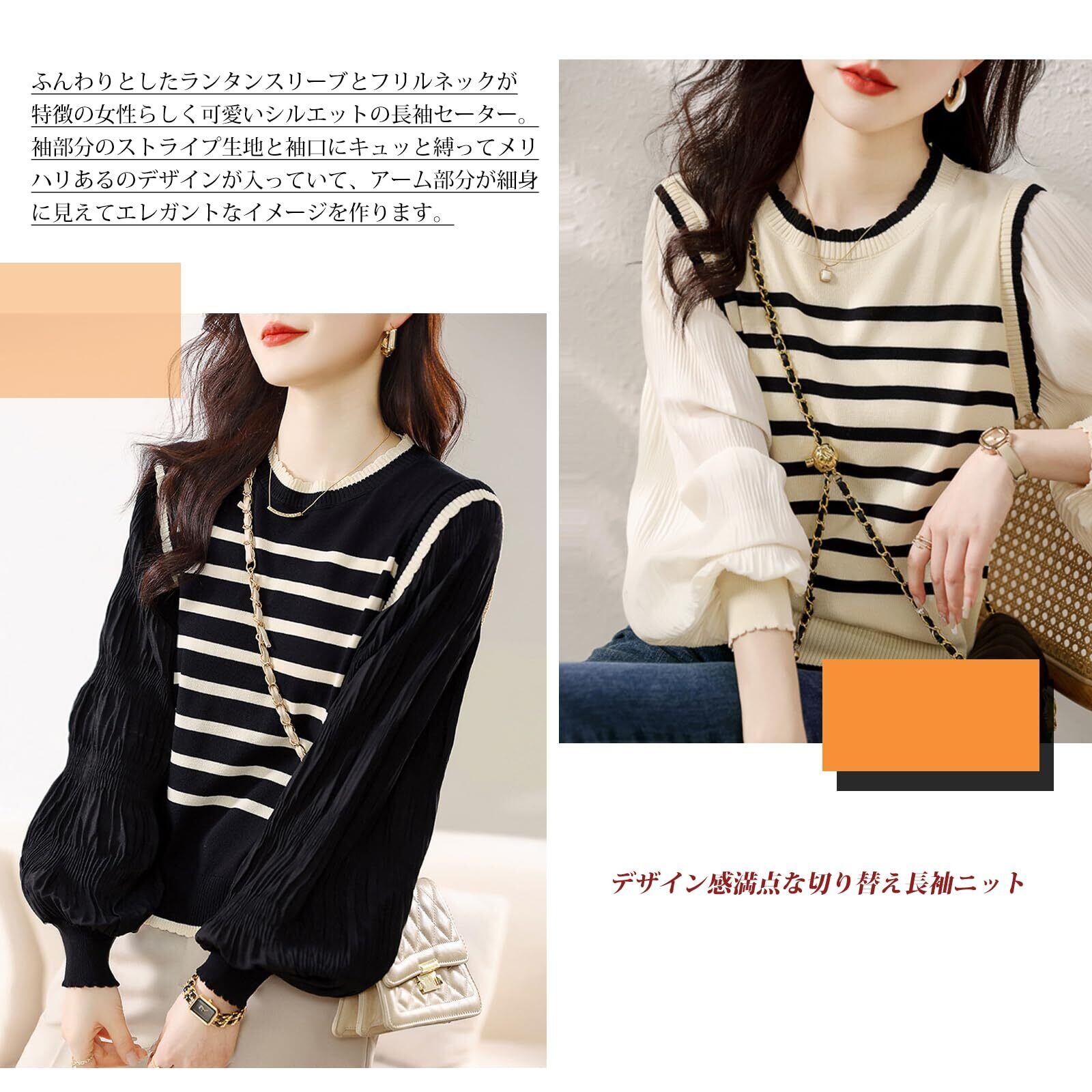 【2022最新】[7-livehouse] セーター レディース ニット 切り替え カットソー 長袖 春 秋 トップス 薄手 プルオーバー 丸首 上品 おしゃれ ボーダー パフスリーブ ゆったり 体型カバー 大人 可愛い 通勤 カジュアル | allstore2
