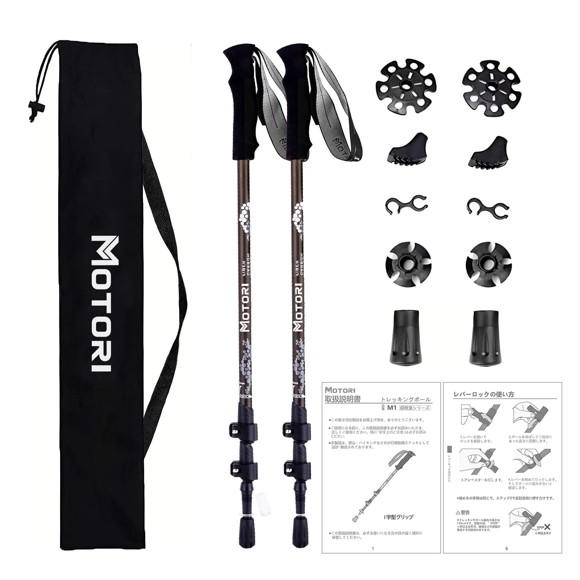 MOTORI トレッキングポール【超軽量169g】【カーボン】登山 ストック 炭素繊維 登山杖 カーボン ファイバー 3段伸縮式 【53/63-135cm】日本語取扱説明 2本セット