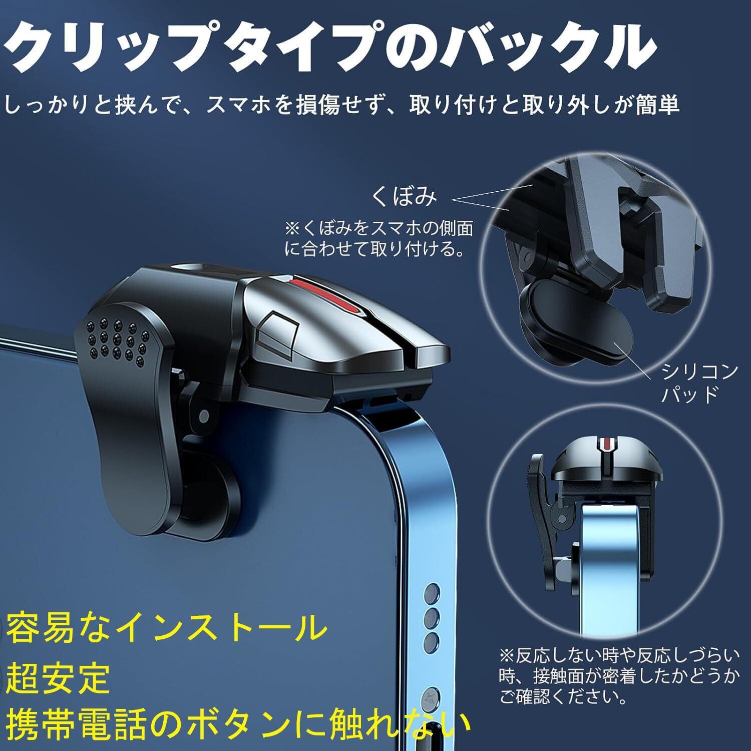 【使用上のヒント】これらのモバイルゲームコントローラーは、内部に感度の高い本物のマウスマイクロスイッチを使用しています。そのため、電磁気的な問題があるいくつかの携帯電話が存在します。これはトリガーが自動的に画面に接触する原因となります。ご心配いただく必要はありません。画面を10秒間オフにして、再度オンにするだけで、この問題はすぐに解決されます。