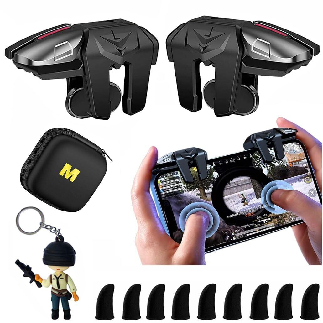 【パッケージ内容】PUBG Mobile/荒野行動/Cyber Hunter L2R2ゲームトリガー1ペア、ゲーミング用指スリーブ9個、男子用シリコンキーリング1個、収納ケース1個.