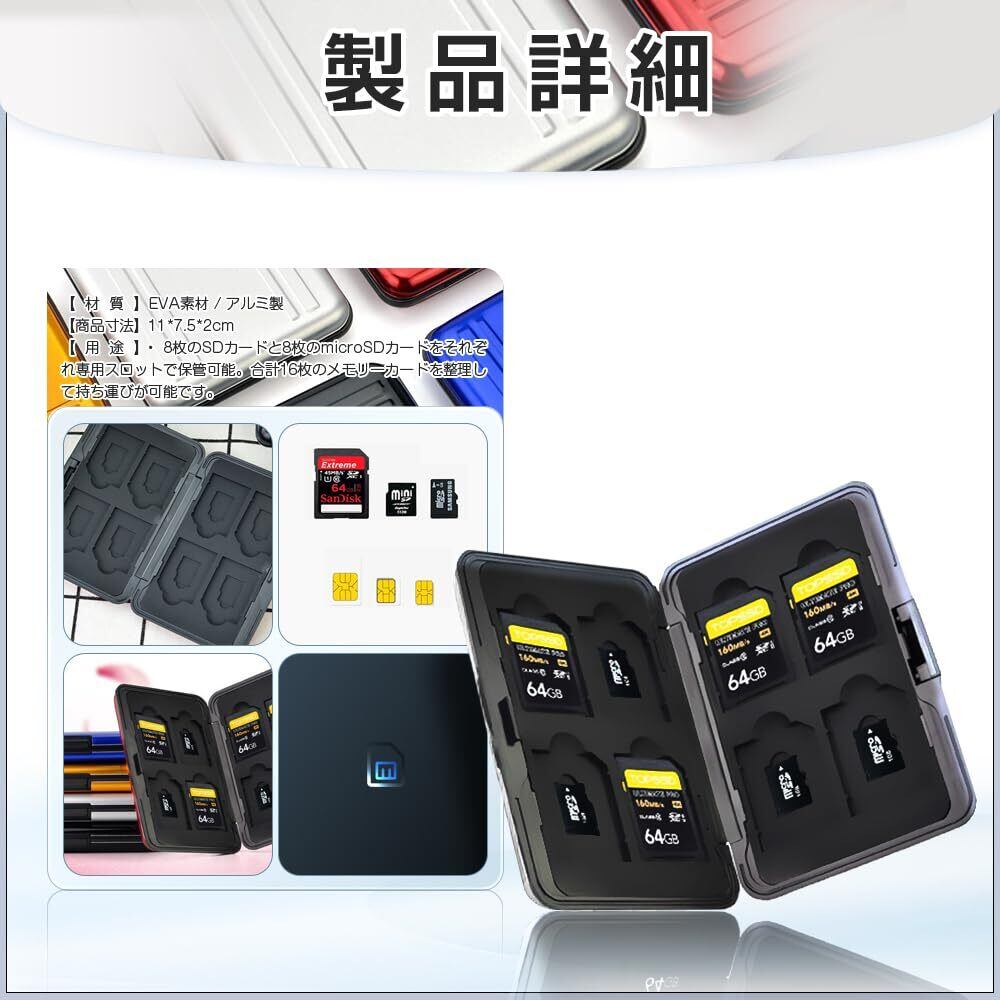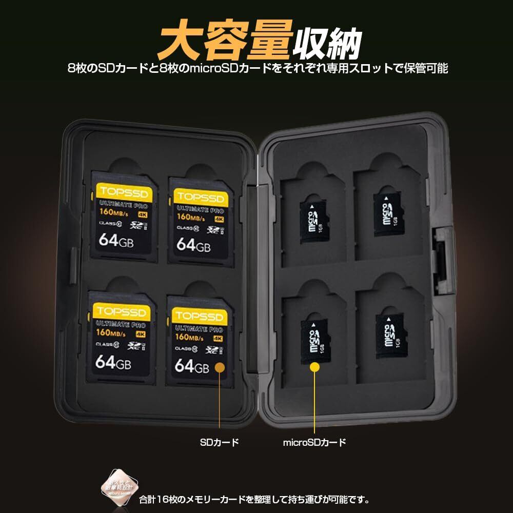 1. 大容量収納 多様なカードに対応:8枚のSDカードと8枚のmicroSDカードをそれぞれ専用スロットで保管できます。合計16枚のメモリーカードを整理して持ち運びが可能で、デジタルデータの管理に最適です。
