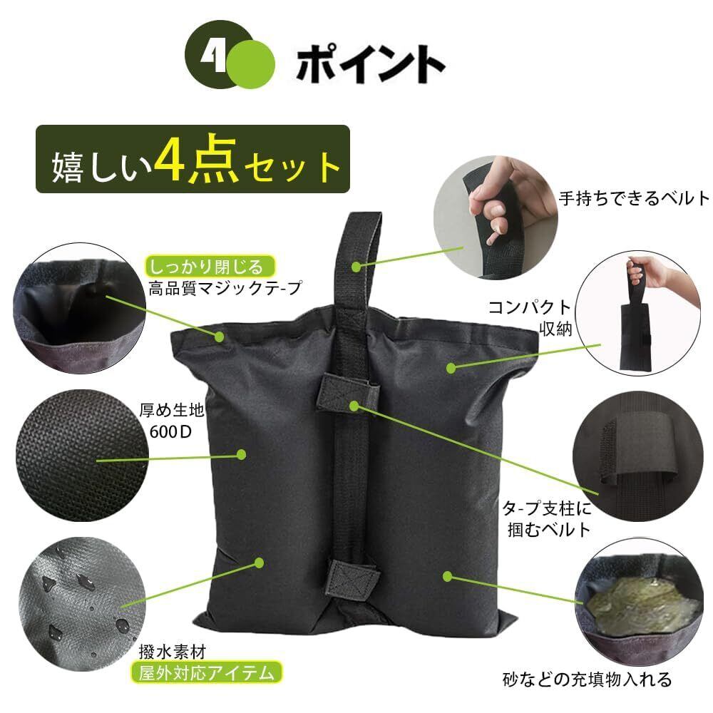 【 使いやすい設計】ウエイトバッグは、頑丈なマジックテープが装備されています。テント やタープポールを簡単に掴めできます。