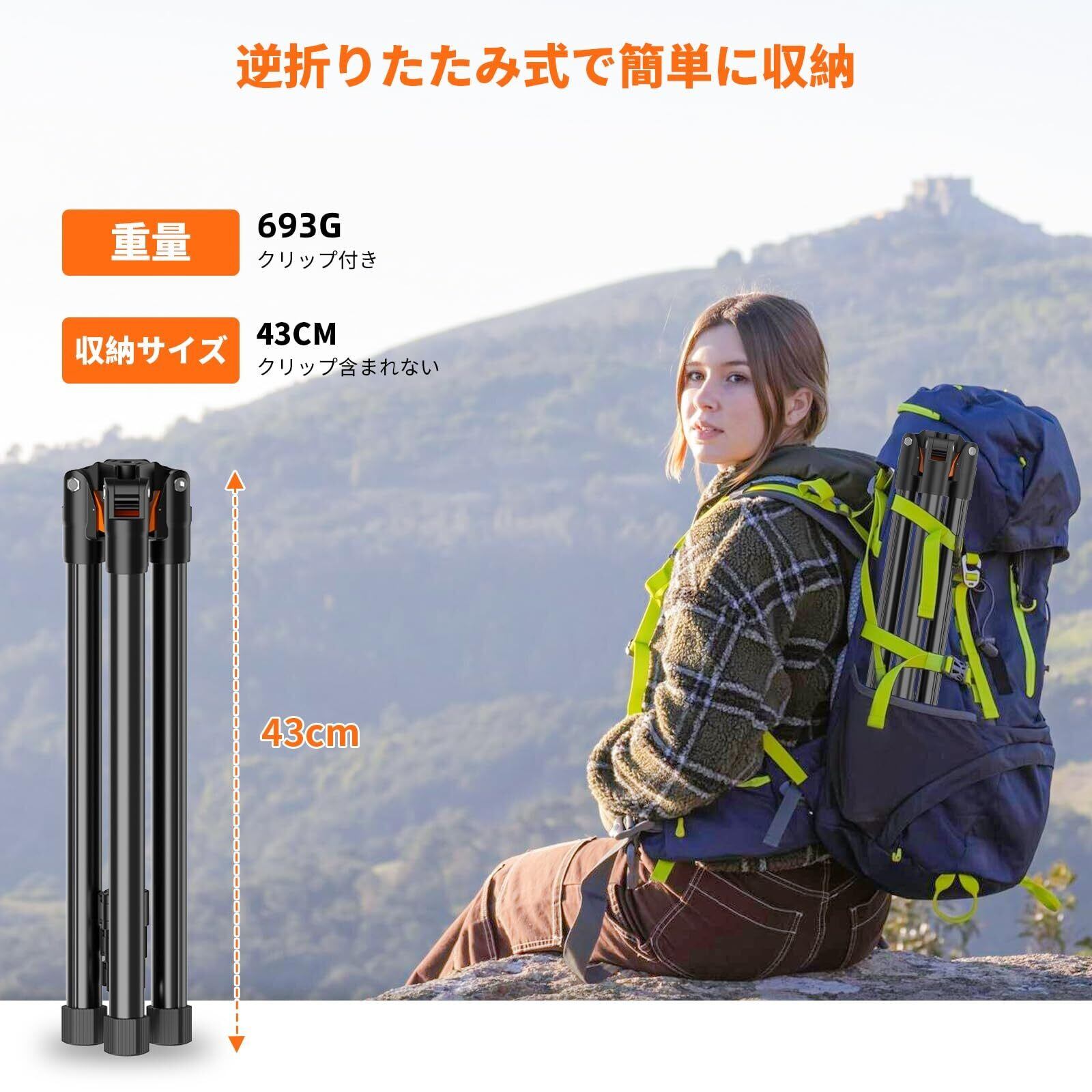 逆折り畳み収納&軽量:タブレットスタンドは、逆折り畳み設計により、使用後はコンパクトに折りたたんで収納でき、持ち運びにも非常に便利です。重量わずか693gで、軽量でありながら強度も十分にあり、外出先での使用にも最適です。日常的に使うスマホ 三脚として、収納時のスペースを気にせず、すぐに取り出して使える便利さが特徴です。