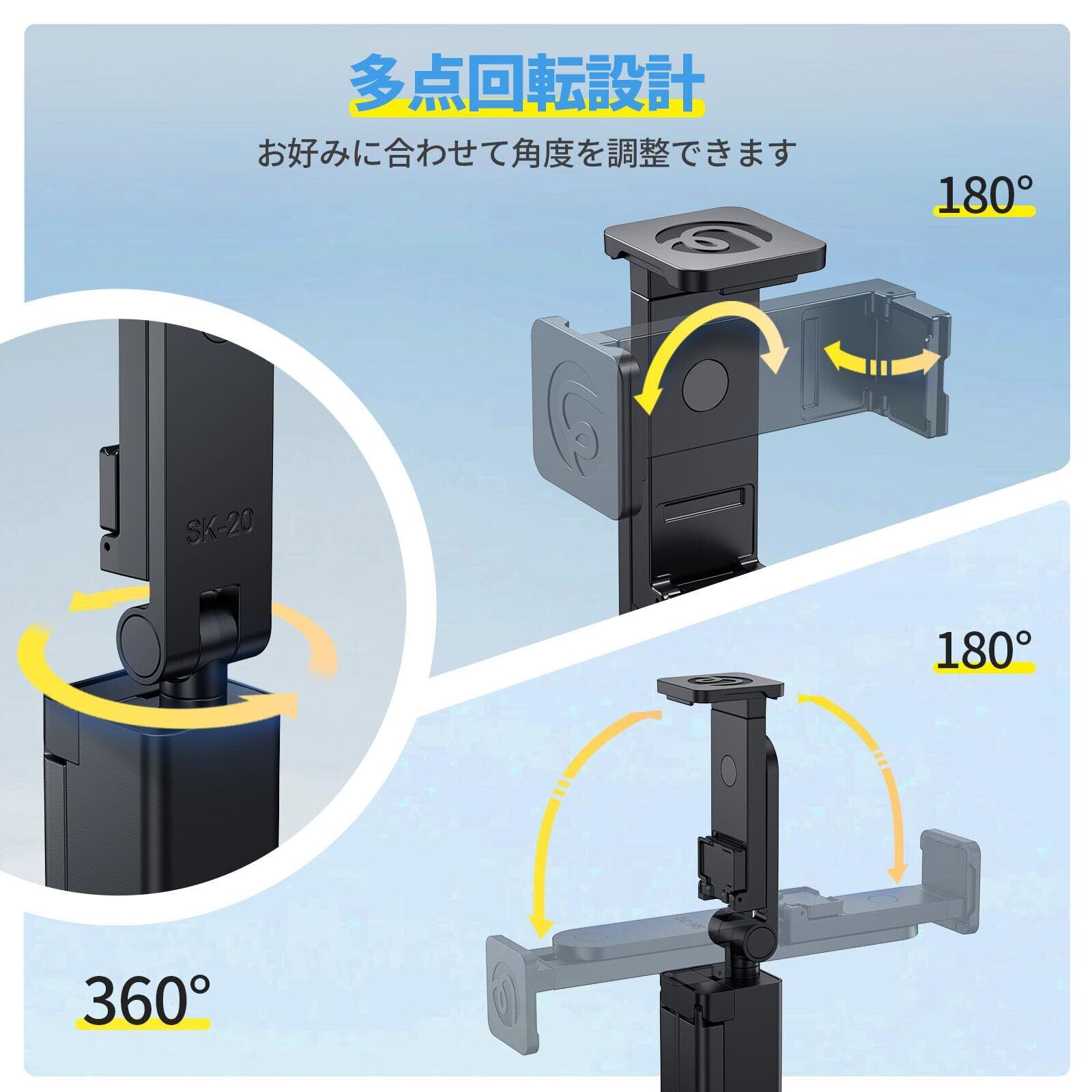 Ulanzi SK-20 スマホ三脚 超小型 マルチスマホスタンド【卓上&クリップ&手持ちモード】携帯スタンド 安定 軽量 収納後13cm 折りたたみ 持ち運び便利 Vlog用 卓上三脚 自撮り棒 旅行 出張 飛行機 新幹線 車 キッチン オフィス セルフィー/生放送/ビデオ通話/撮影録画/動画鑑賞 Android/iPhoneに対応