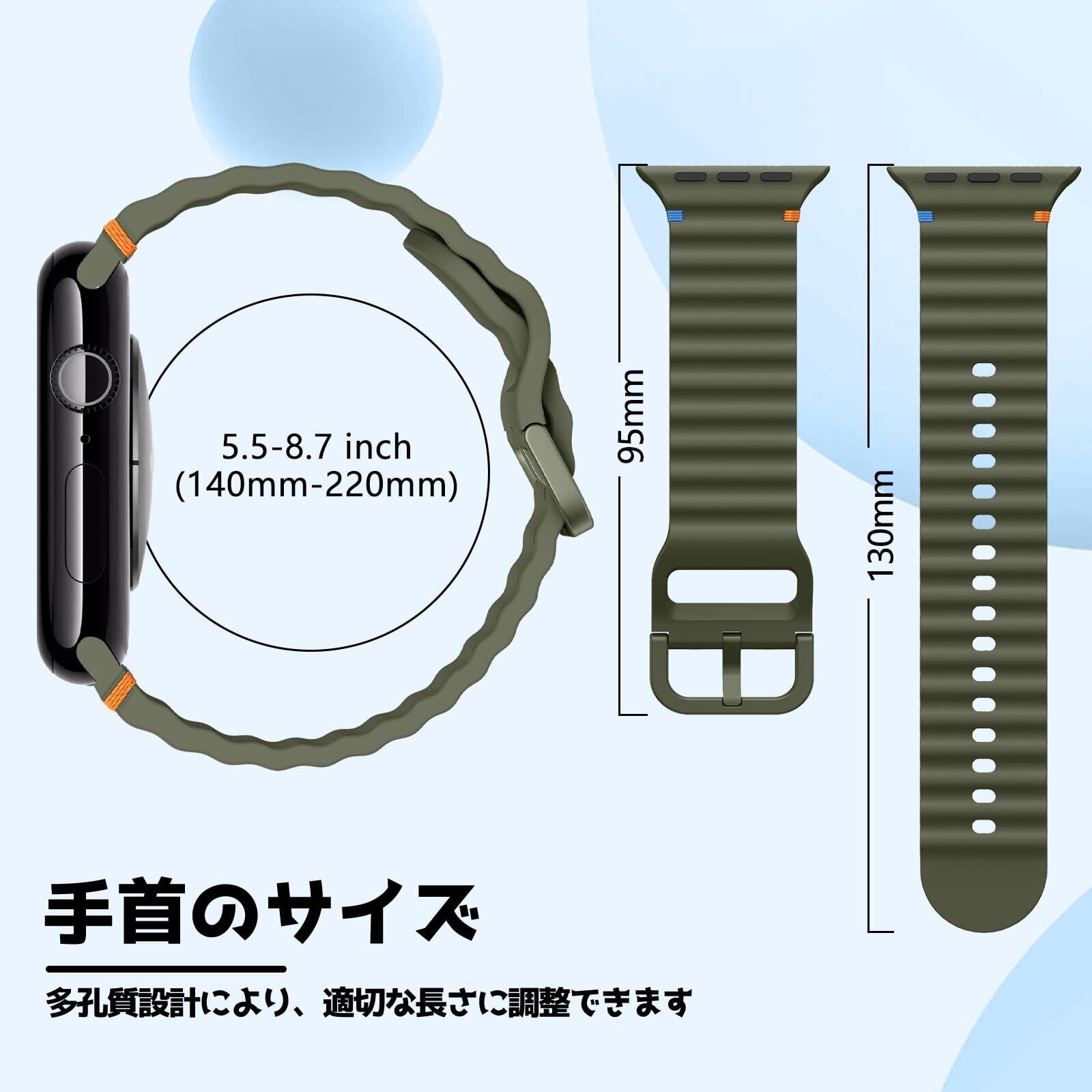 【2022最新】[AiMaoo] コンパチブル アップルウォッチ バンド 49mm 46mm 45mm 44mm 42mm シリコン スポーツバンド おしゃれ 柔らかい 男女兼用 対応 Apple Watch Ultra2 Ultra バンド Series 10 9 8 7 6 5 4 SE2 SE 3 2 1 (アーミーグリーン)