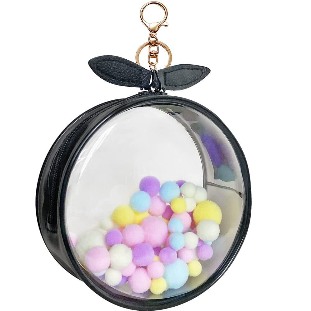 外観:透明なPVCを採用して、両面透明、耐久性があり、ケースは丸い、ファスナーはPU製可愛い兎耳付きです。キーホルダー付、カバンにひっかけるデザイン。
