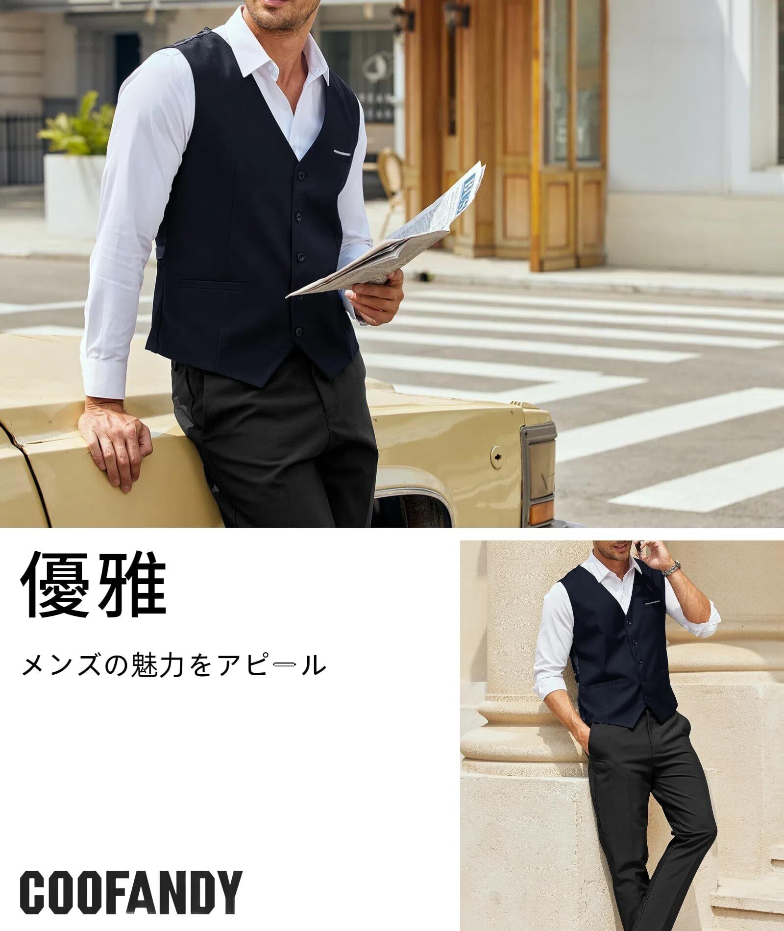 COOFANDY 定番なスーツベスト 優雅な印象を与える スリムフィット ビジネスカジュアル