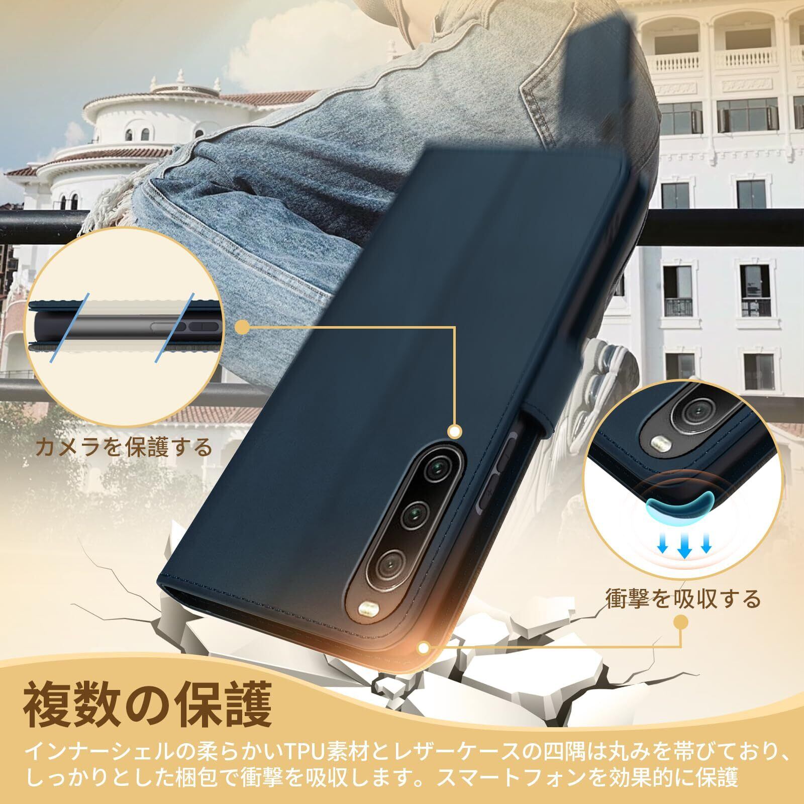 Xperia 10 V ケース 手帳型 財布型 全面保護 耐衝撃 エクスペリア 10 V スマホケース カード収納 肌感レザー ラップホール付き 横置き機能付き マグネット内蔵 SO-52D SOG11 携帯カバー 指紋防止 耐摩擦 ファッション ベルトマグネット,ブルー