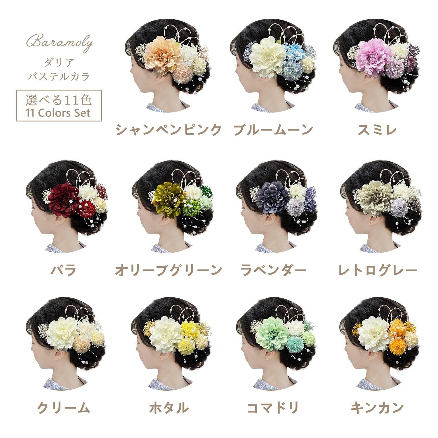 Baramoly 髪飾り ダリア 和装 着物 浴衣 プリザーブドフラワー 造花 花飾り 祭り 花火大会 成人式 結婚式 卒業式 七五三 ウエディング 謝恩会 かわいい 簡潔 髪留め