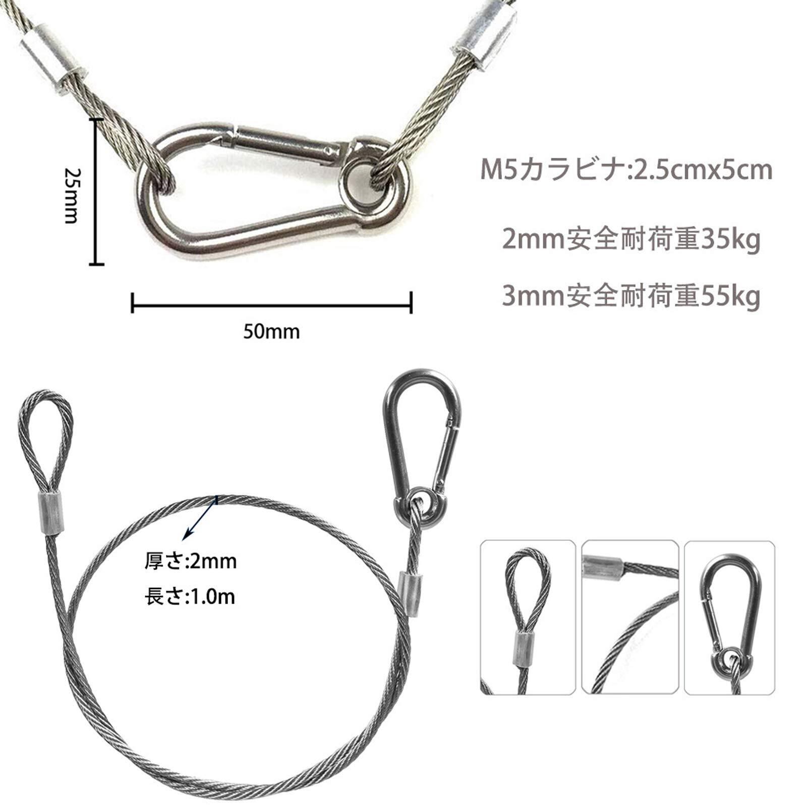 落下防止 セキュリティ ワイヤー ケーブル フック付き 舞台 照明 スポットライト安全 ワイヤー 耐荷重/35kg 防災 用品 地震対策 転倒防止 2mm/3本 (1.0m長)
