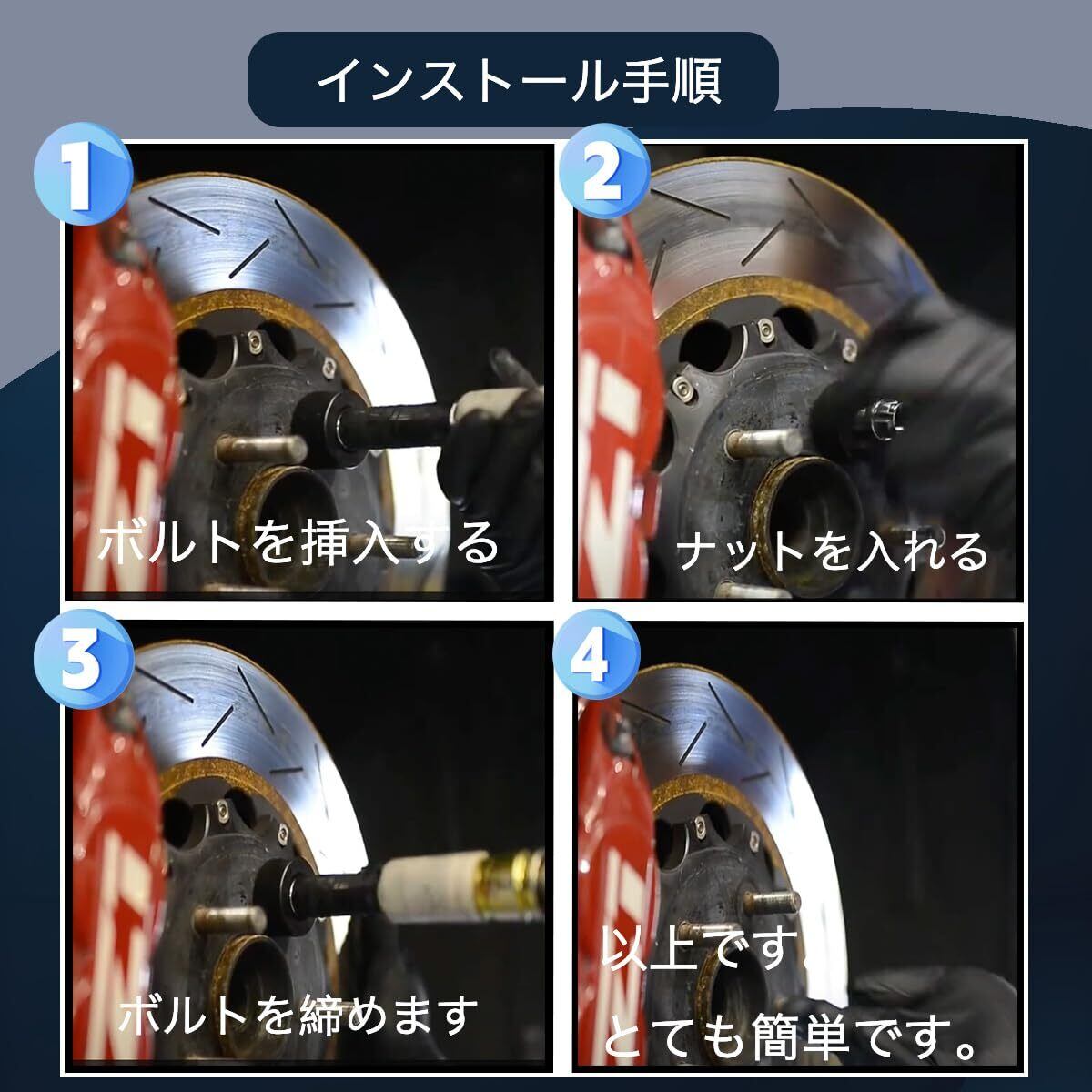 【簡単取り付け】特別な工具は不要で、シンプルな構造により初心者でも簡単に扱えます。1セットに必要な工具がすべて揃っており、携帯や保管も便利です。ホイールスタッドの取り付け・交換作業を効率的にサポートします。