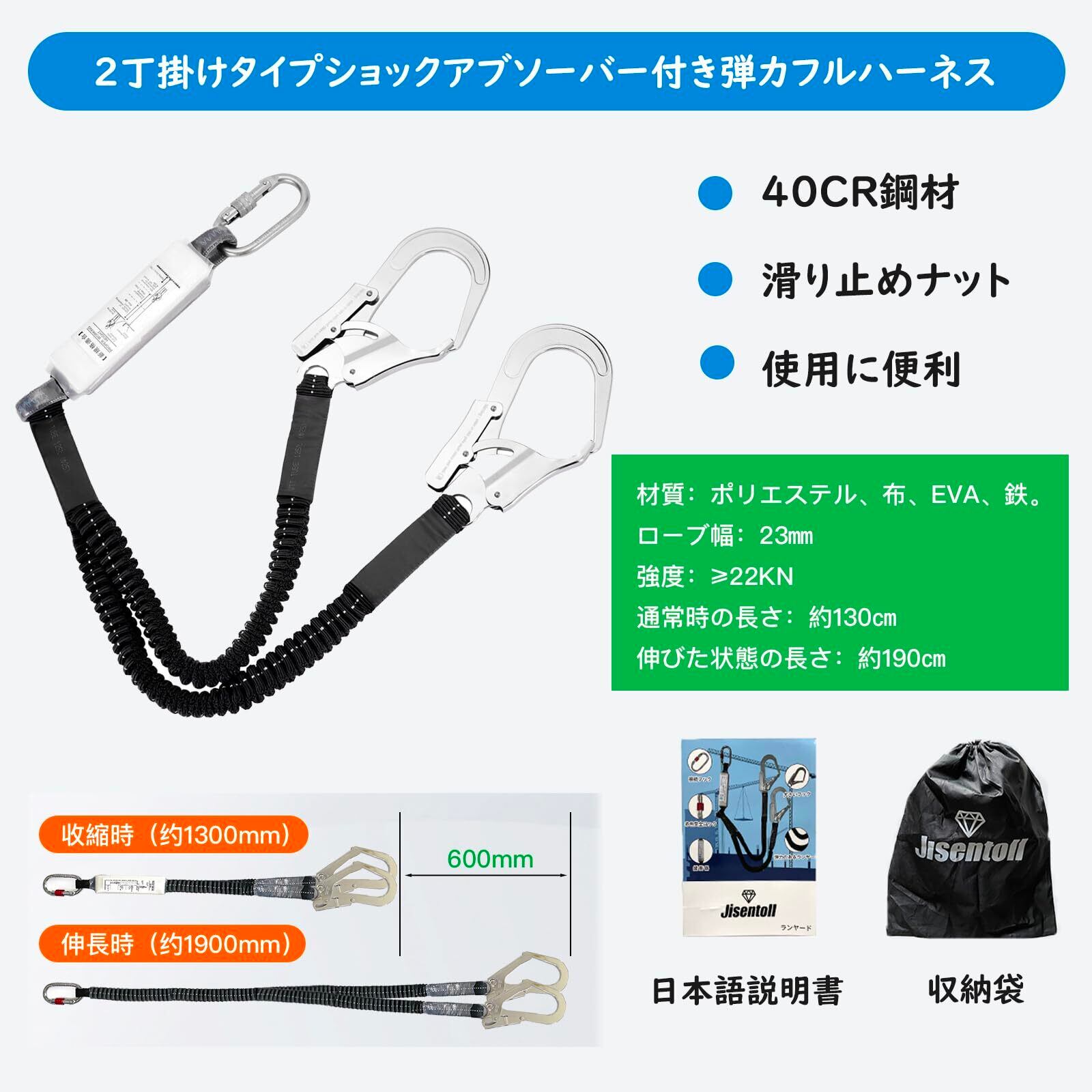 [Jisentoll] [新規格適合] ランヤード 2丁掛け 新規格 フルハーネス用 ランヤード安全带ランヤード 新規格適合品 墜落制止用器具 用ランヤード フルハーネス用 ランヤード 一丁掛け 電気工事 建設工事 現場 一般高所作業用(2丁掛け)
