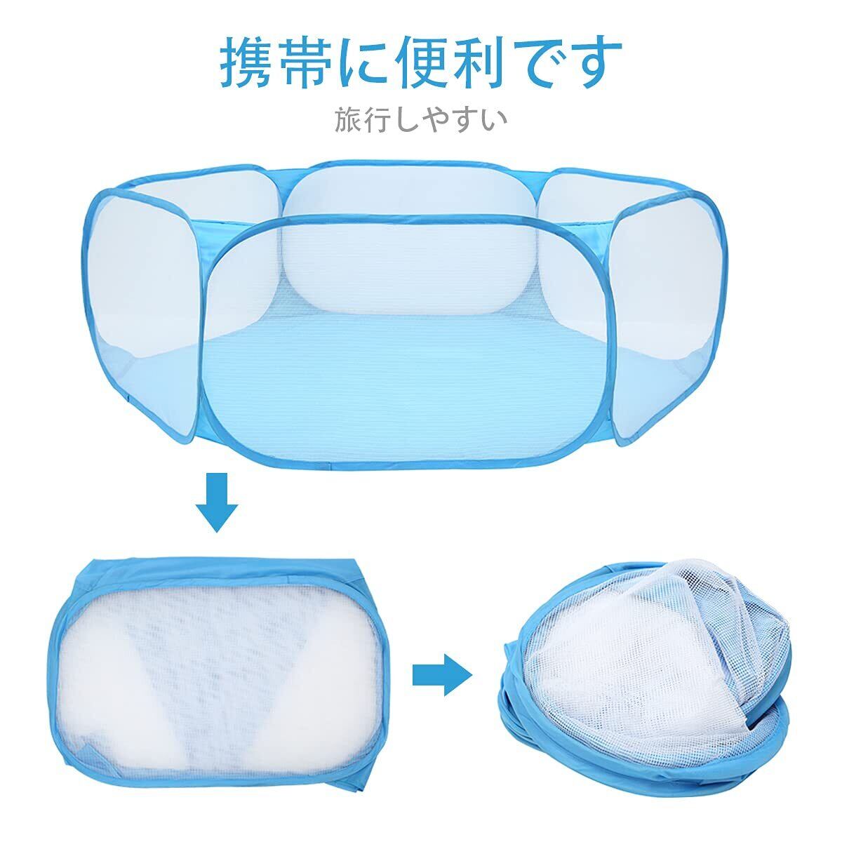 【特価商品】YFFSFDC ペット プレイ サークル 小動物フェンス アウトドア/室内 遊び用のサークル 折り畳式 小動物 メッシュ ケージフェンス 収納簡単 軽量 脱走防止 袋付き (ブルー)120cm | allstore2