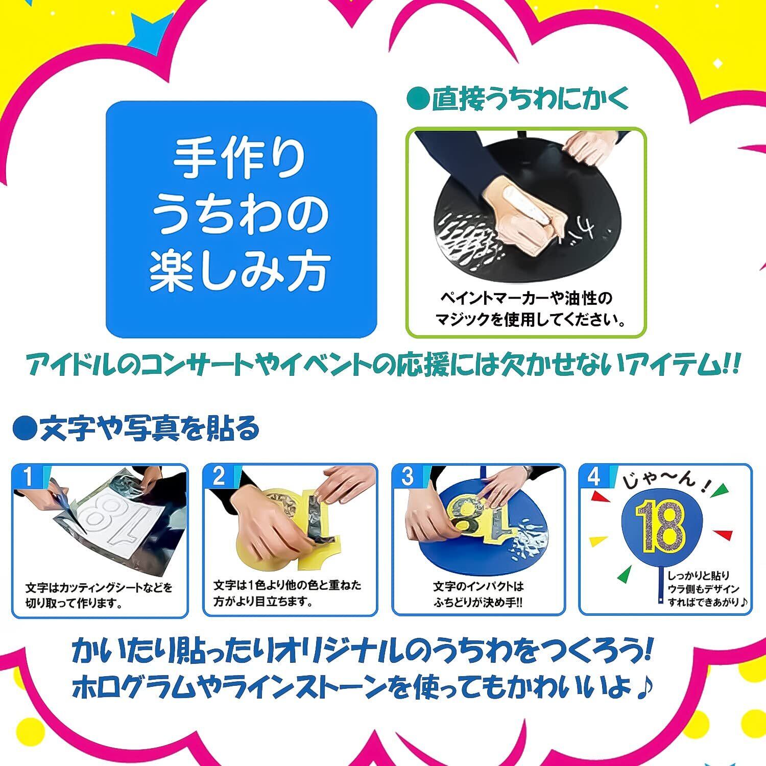 推しのライブや体育祭の応援にぴったりの自由にデコレーションできるうちわです!
