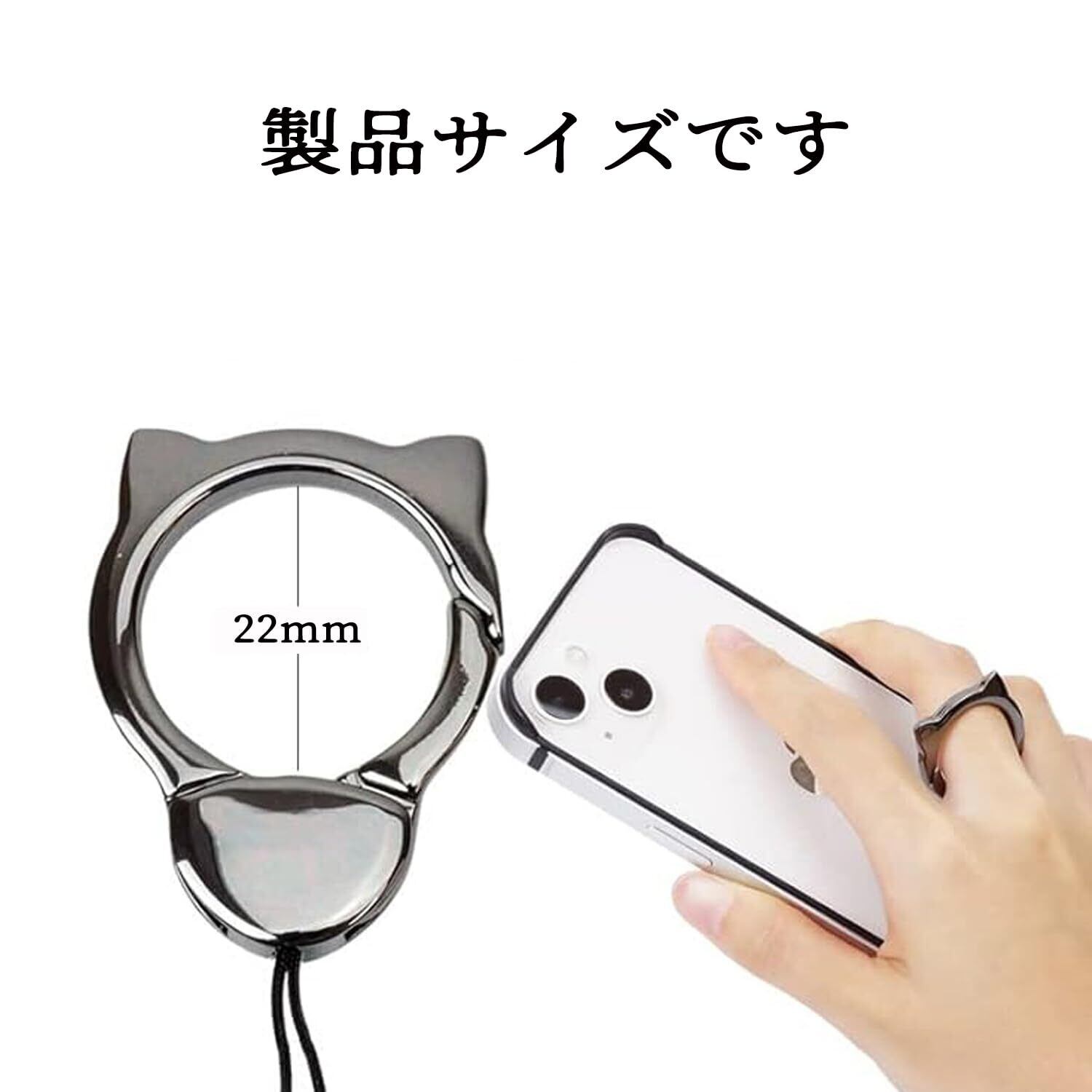 [YaoooosF] リングストラップ フィンガーストラップ スマホ ホールド ねこ 耳 落下防止 合金 吊下げひも スマホ ショルダーストラップ カラビナ スマホ フィンガー 携帯ストラップ フィンガーリング