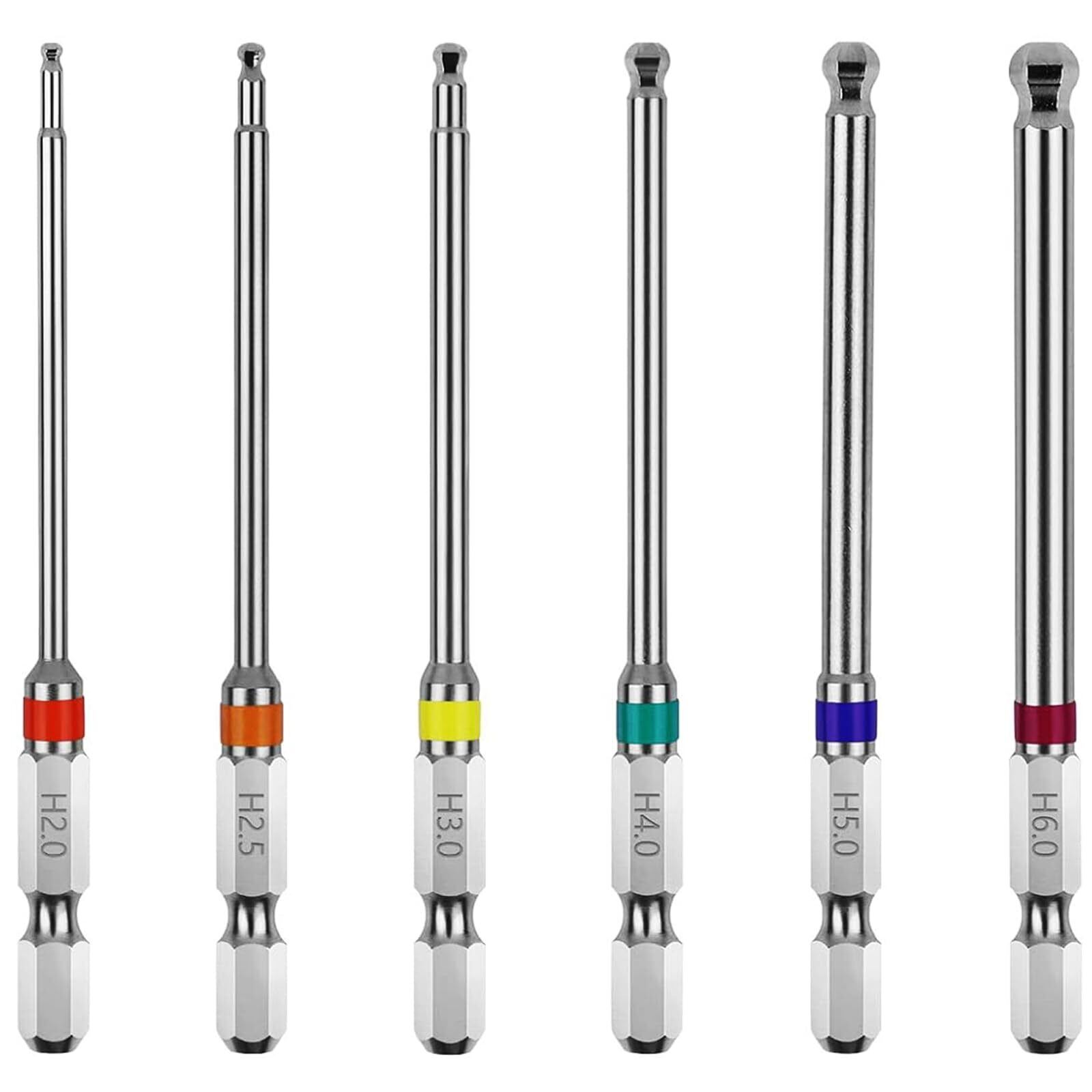 ユニークなデザイン:サイズ:対辺2/2.5/3/4/5/6×100mm(ボールポイント六角ビット各1本)。異なるタイプのねじのニーズに対応し、作業をより簡単かつ効率的にします。