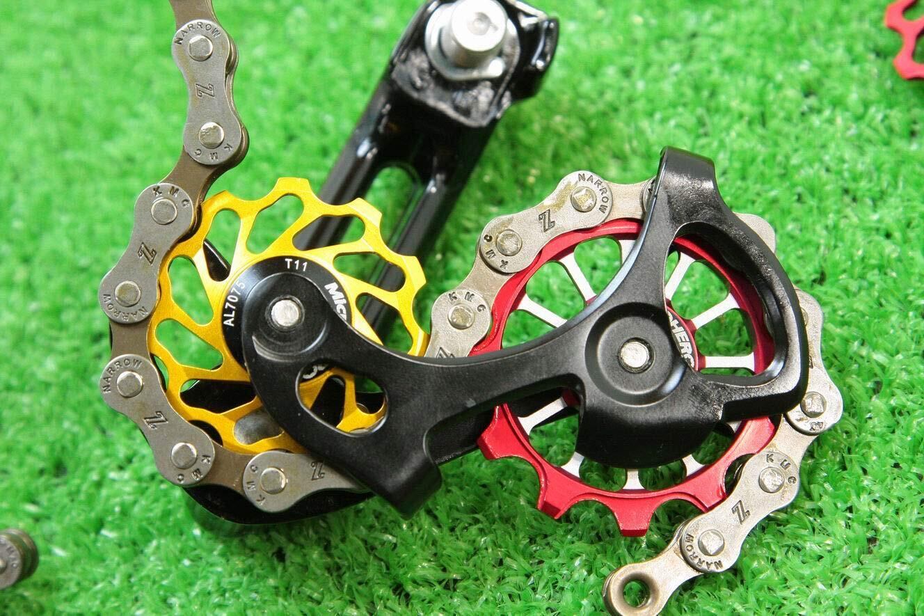 ・マイクロヒーロー(MicrOHERO)のアルミCNCボーディにセラミックベアリング使用しました、軽量リアディレーラー用プーリーです。