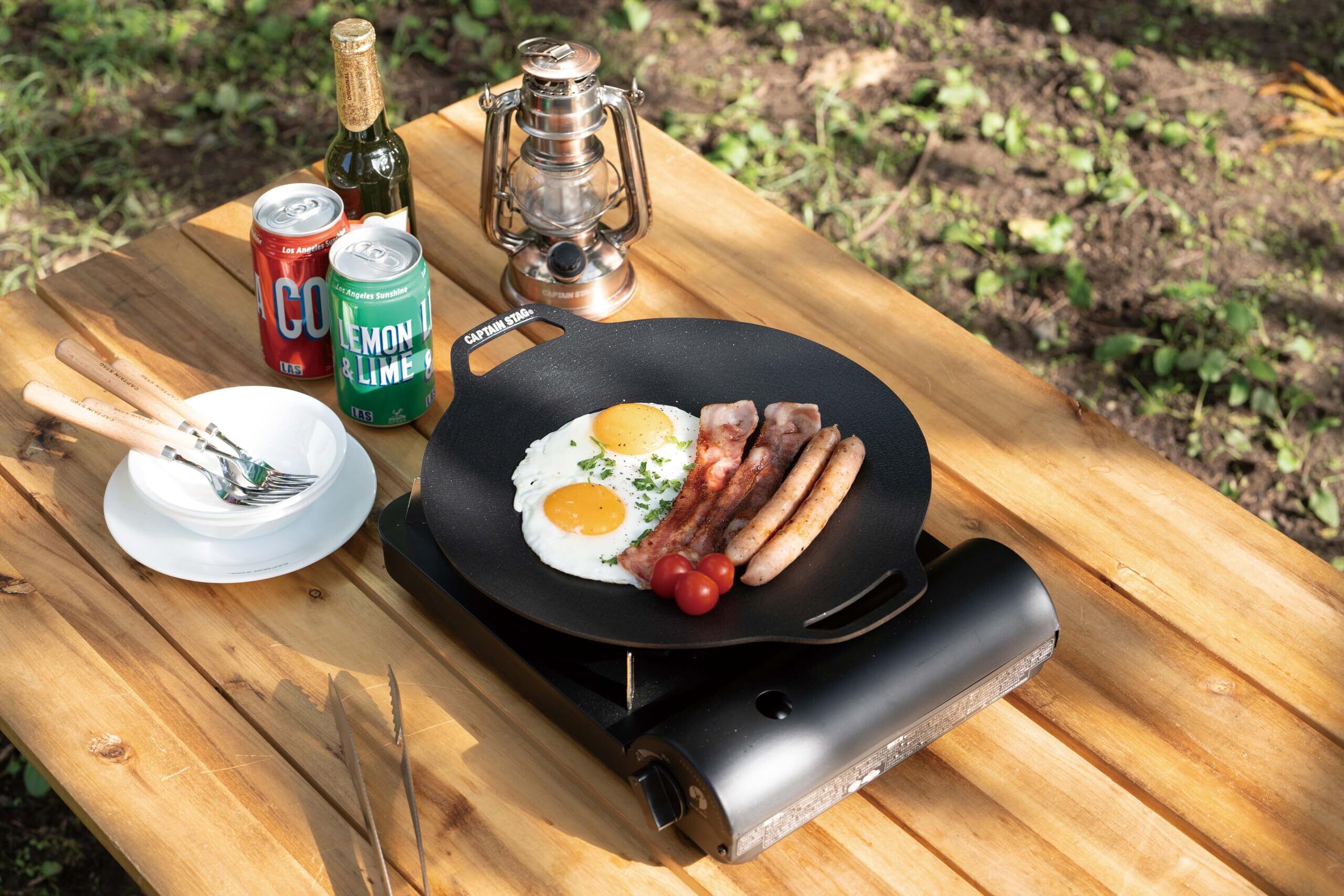 キャプテンスタッグ(CAPTAIN STAG) アウトドア 鉄板 マルチグリドル ラウンド グリルプレート 20cm/30cm/34cm アルミ製 ふっ素加工 オール熱源対応 【本体/蓋/ハンドル/バッグ】