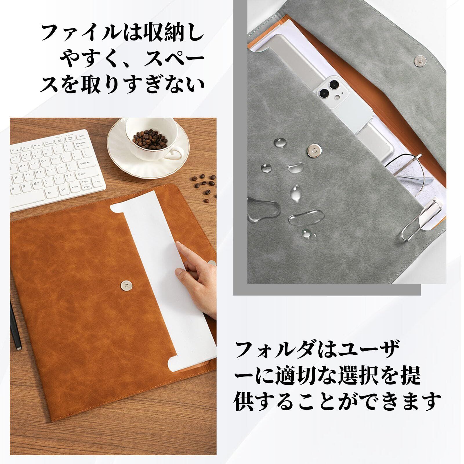 yowodana 2個入り ファイルフォルダー PUレザー 書類ケース A4サイズ 横型 磁気スナップ 厚手 持ち運び ファイルケース ドキュメントレター 書類ケース 資料 封筒 大容量 防水 資料 収納 オフィス ビジネス 33*24cm(グレー/ブラウン)