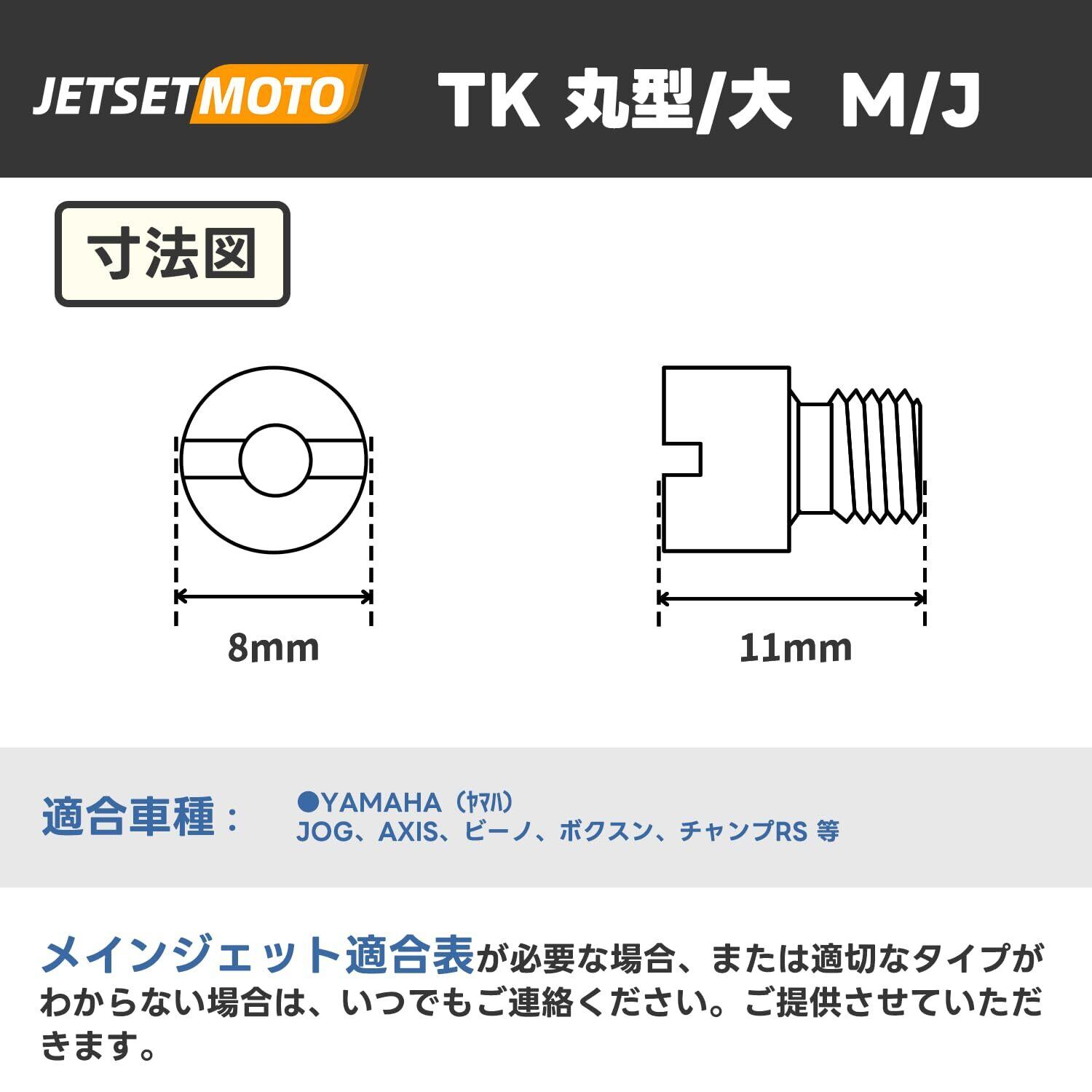 【メインジェットのサイズ】TK丸型特大タイプ(サイズ:直径8mm×高さ11mm)。各車種専用設定で使用頻度の高いジェット類をSETにしてお求めやすくなりました。