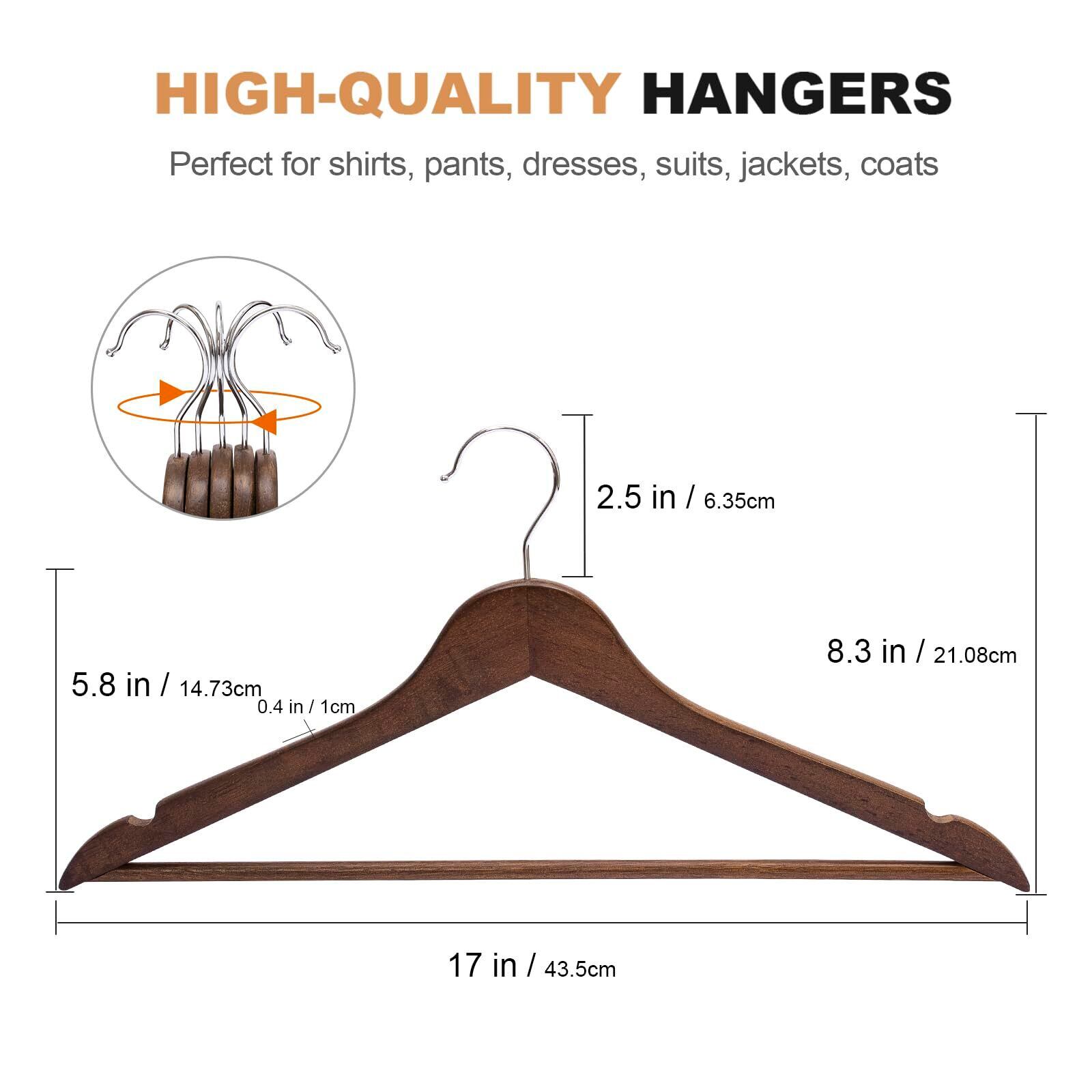 ELONG HOME 木製ハンガー 滑り止め凹みとズボンバーが付いた衣類ハンガー 型崩れ防止 360度回転薄型洋服ハンガー スーツ・シャツ・ジャケット・コート用 20本組セット 褐色