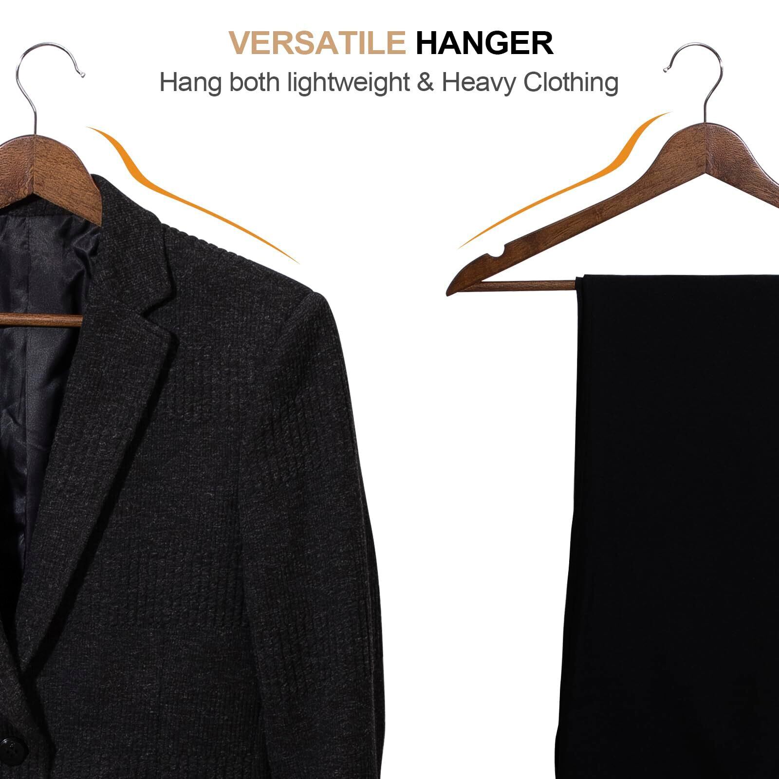 【高級褐色の木製ハンガー】良質な木材を使用し、頑丈で耐久性も抜群です。絶妙な木目調の洋服ハンガー 木製、環境にやさしい耐摩耗性ワニスによる塗装、クローゼットにクルミの木のハンガーを掛けるといい味です。