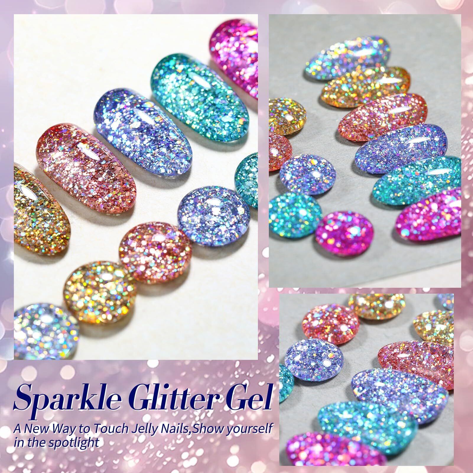 【2022最新】BORN PRETTY ジェルネイルカラーセット ラメ入りカラージェル ホログリッター ホログラム 春夏ネイル 6色 ゴールド ブルー UV/LED対応 ポリッシュタイプ セルフネイル