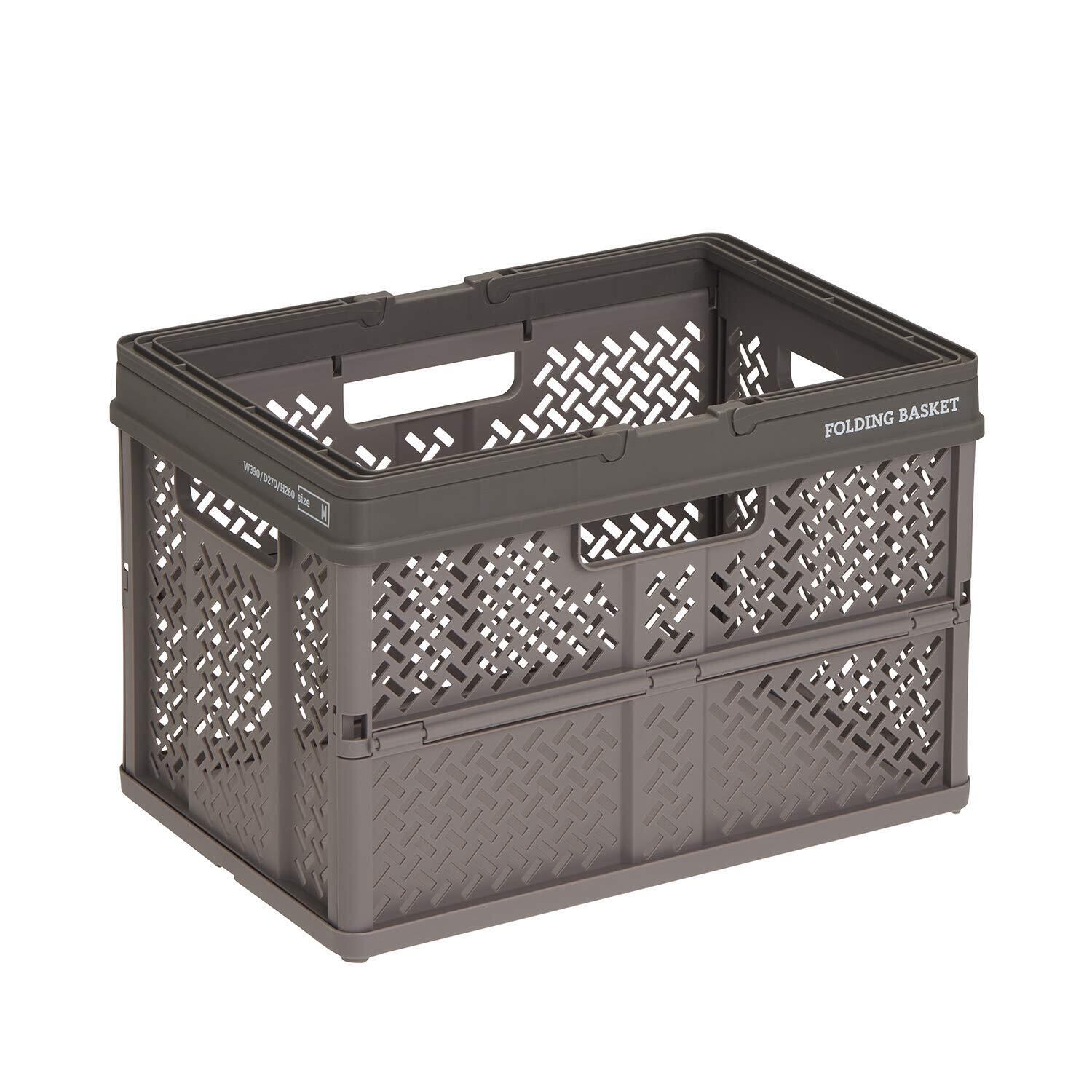 天馬(Tenma) 折りたたんでコンパクトになる持ち手付きの収納ボックス 完成品 折りたたみバスケット Mサイズ お部屋に馴染むデザインの折り畳みコンテナ オリコン カゴ A4ファイルがぴったりのバスケット プラスチック 【組立不要】 【色 グレー】 【サイズ M】 【幅39×奥行27×高さ26cm】【折りたたみ時 高さ5.5cm】