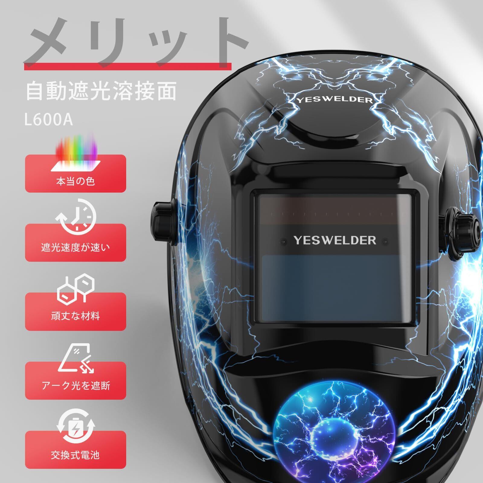 【数量限定】YESWELDER 溶接面 本当の色を映す ソーラーパワー 自動遮光溶接面 1/30000秒 遮光度4/5-9/9-13 TIG MIG ARC溶接に対応溶接ヘルメット LYG-L600A-A