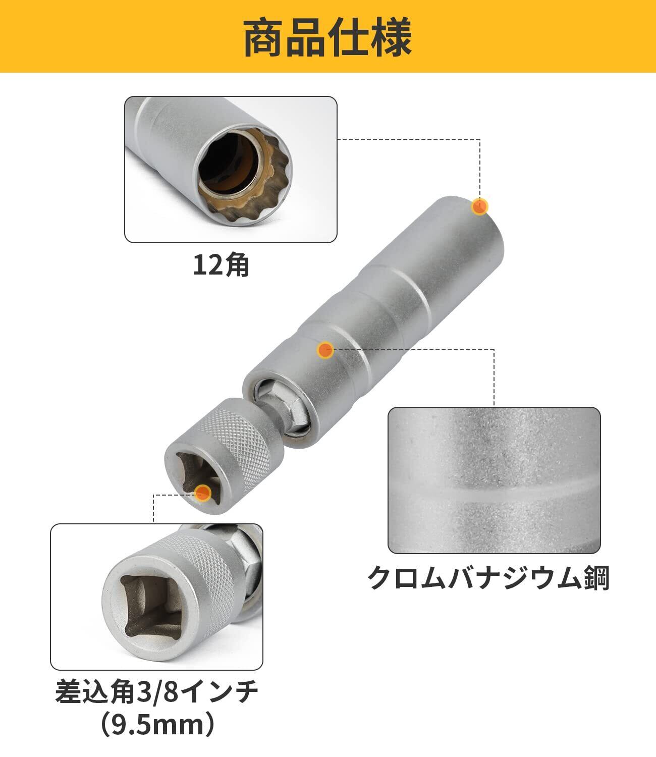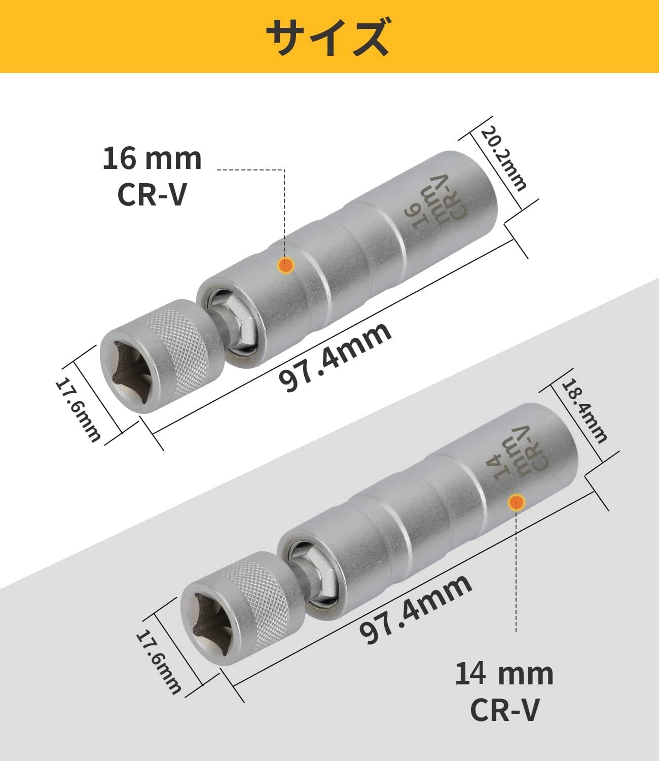 【在庫セール】Alpha Rider スパークプラグレンチ 14mm&16mm 2本セット 磁気ユニバーサルジョイント プラグソケット 360度 差込角3/8"(9.5mm) 12角薄壁 | allstore2