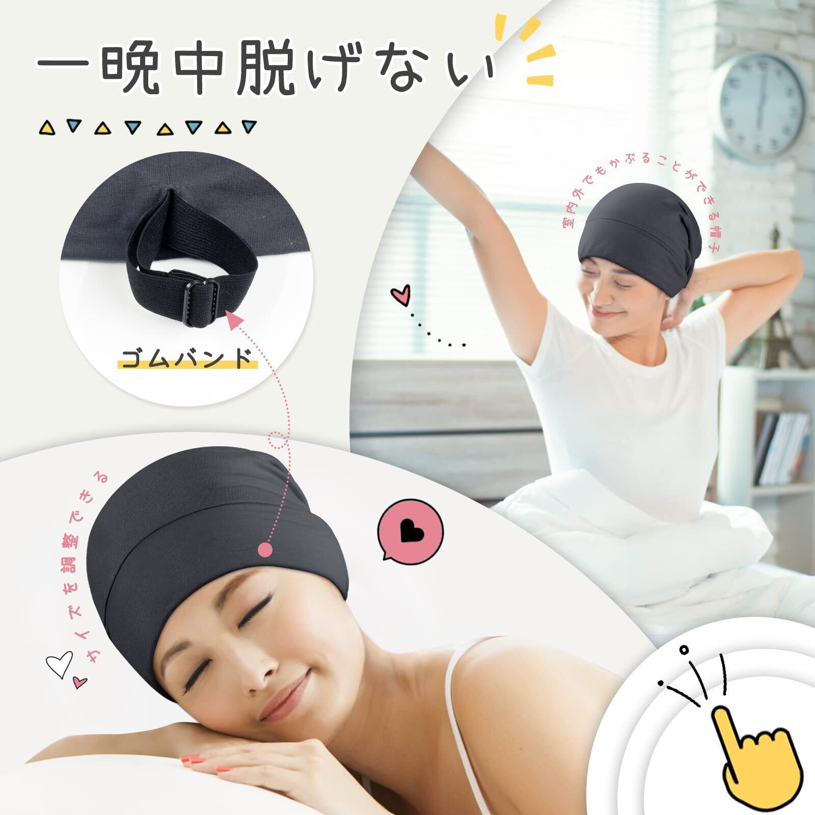 【独特なデザイン】裏地:6Aクラス19匁シルク100% 表地:モダール ナイトキャップは100%マルベリーシルクでできており、外側にモーダル(レーヨン)が付いています。 モーダルはしわになりにくく、柔らかい触手で、お手入れが簡単で、自由に折りたたむことができます。内側にシルクは、髪を保護するのに十分なほど滑らかで柔らかいです。注意:裏地の色はブラックとライトグレーの2色があり、ランダムにお客様にお送りします。天然シルクなので、届いたばかりの商品は匂いが少しありますが、洗濯すると消えます。