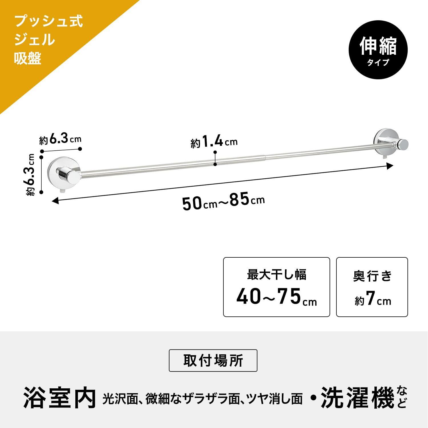 すごい吸盤 ステンレス 伸縮 タオル掛け 50~85cm (最大干し幅75cm) ザラザラ壁対応 密着強力ジェル 落下防止機能