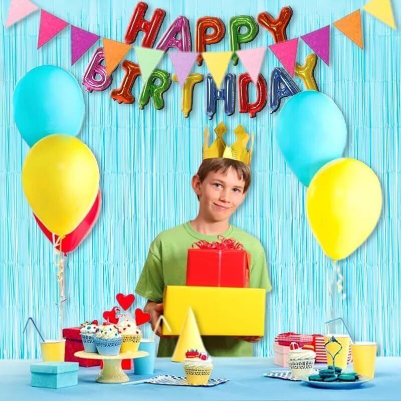 2個セット BRAVESHINE タッセルカーテン 誕生日 飾り付け 100cm*250cm パーティ 飾り カーテン birthday decorations パーティー デコレーション party decoration (ブルー)