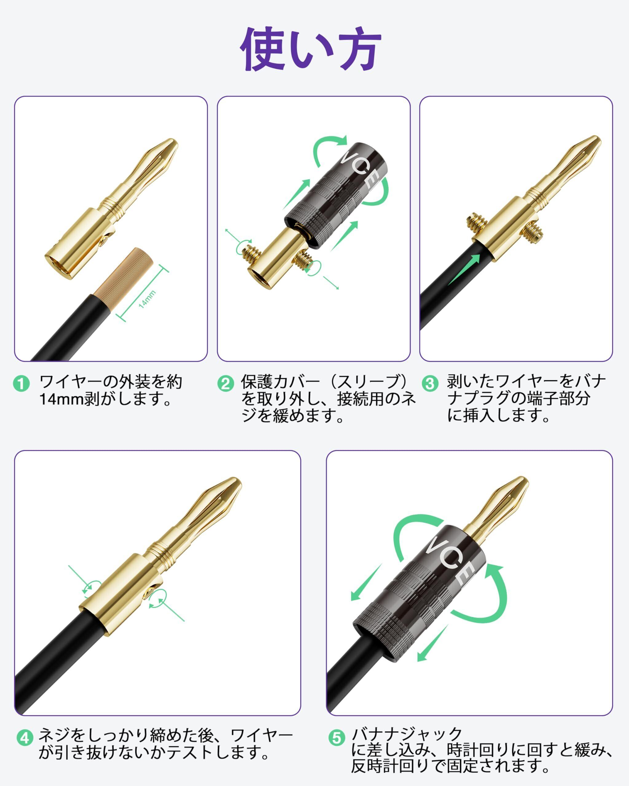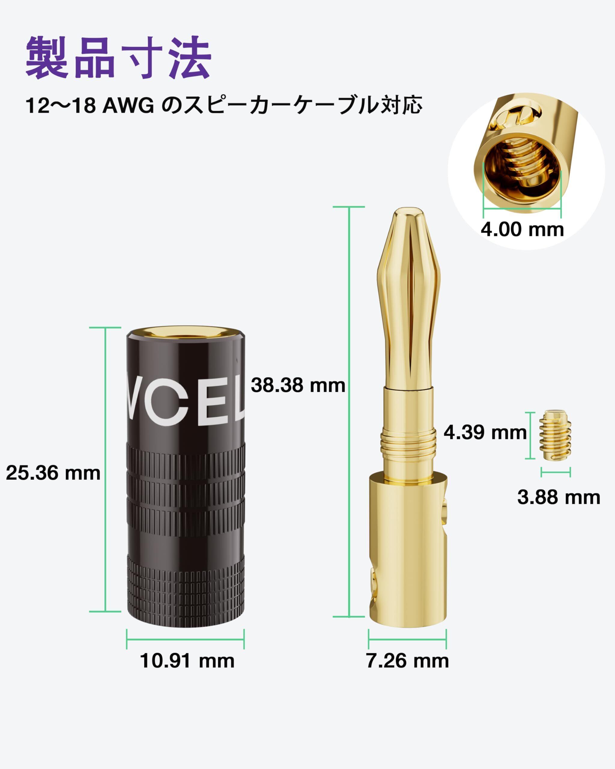 【プラグ&プレイ、幅広い互換性】ハンダ付け不要で、素早く簡単にセットアップ可能!弊店のスピーカープラグは、A/Vレシーバー、アンプ、サラウンドサウンドシステム、バナナプラグ対応の壁面板などとシームレスに連携します。12〜18 AWGのスピーカーケーブルに対応します