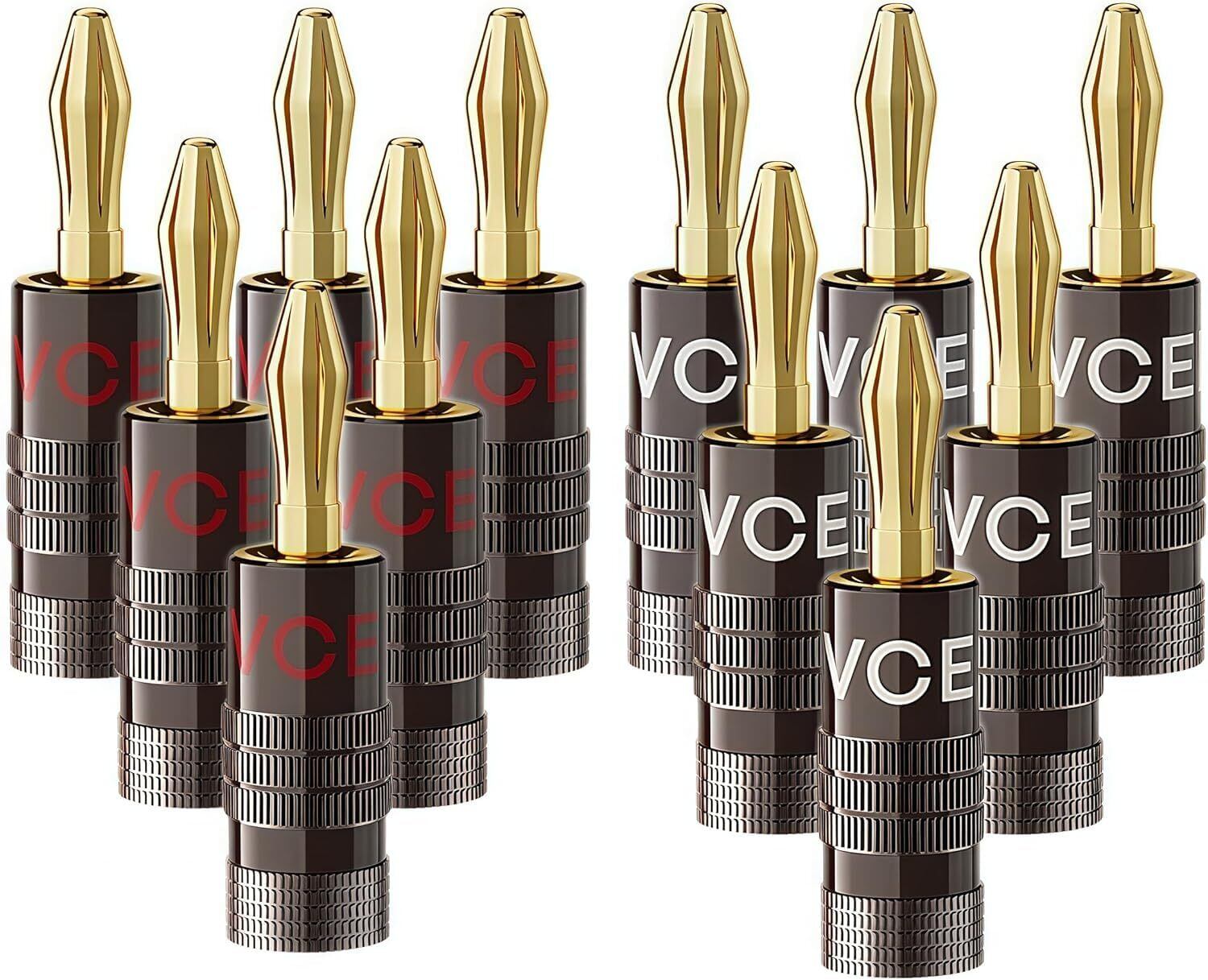 【在庫処分】VCELINK バナナプラグ 12個(6ペア) 24金メッキ スピーカーケーブル バナナ端子 ソルダーレス 12-18AWGケーブル、アンプ、壁プレート、ホームシアター用
