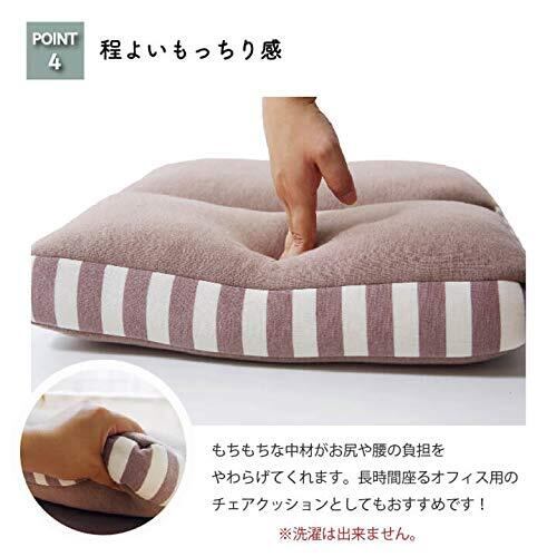 広げれば座布団や腰当てとして、折りたためばゴロンと横になってくつろぐ時の枕に早変わり。シンプルなデザインなので、お部屋のテイストを問いません。リビングでのくつろぎ時、ラグだけでは底つき感があるときに、また来客時にも便利です。長時間座るオフィス用のチェアクッションとしてもおすすめです。もちもちな感触でお尻や腰への負担をやわらげてくれます。表地は、なめらかな肌触りで季節を問わずオールシーズンご使用頂けます。独特のもちもちした柔らかなタッチ感に仕上げました。