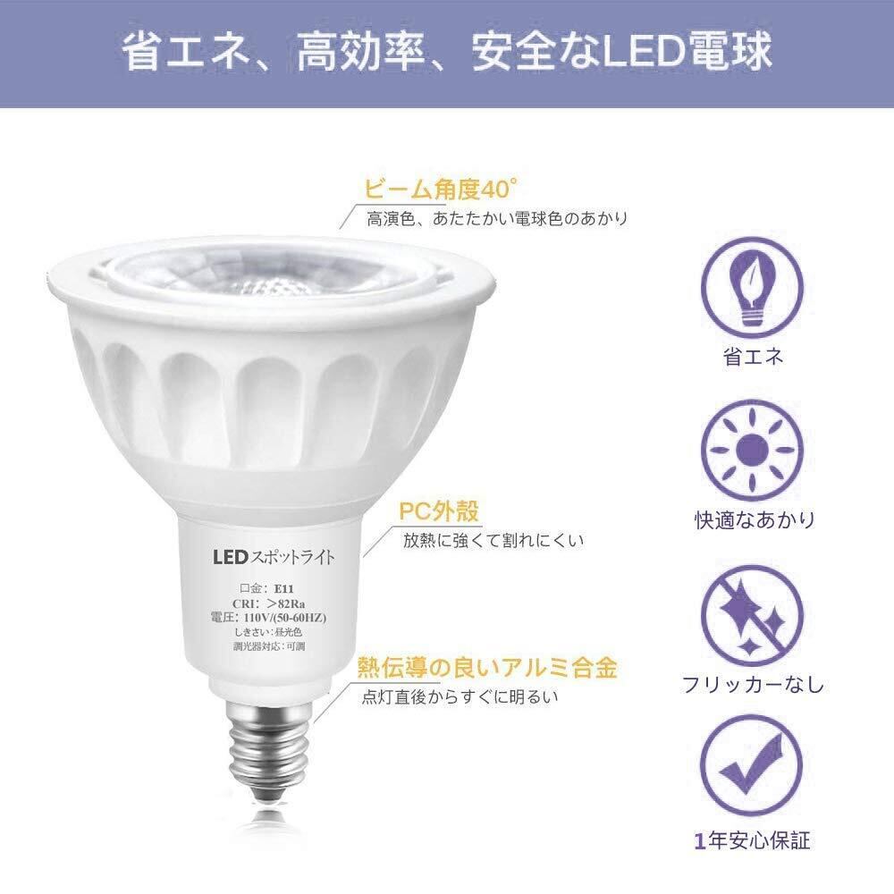 省エネ:約90%省エネです。5.5W E11 LEDスポットライトは、50Wハロゲンランプに相当です。