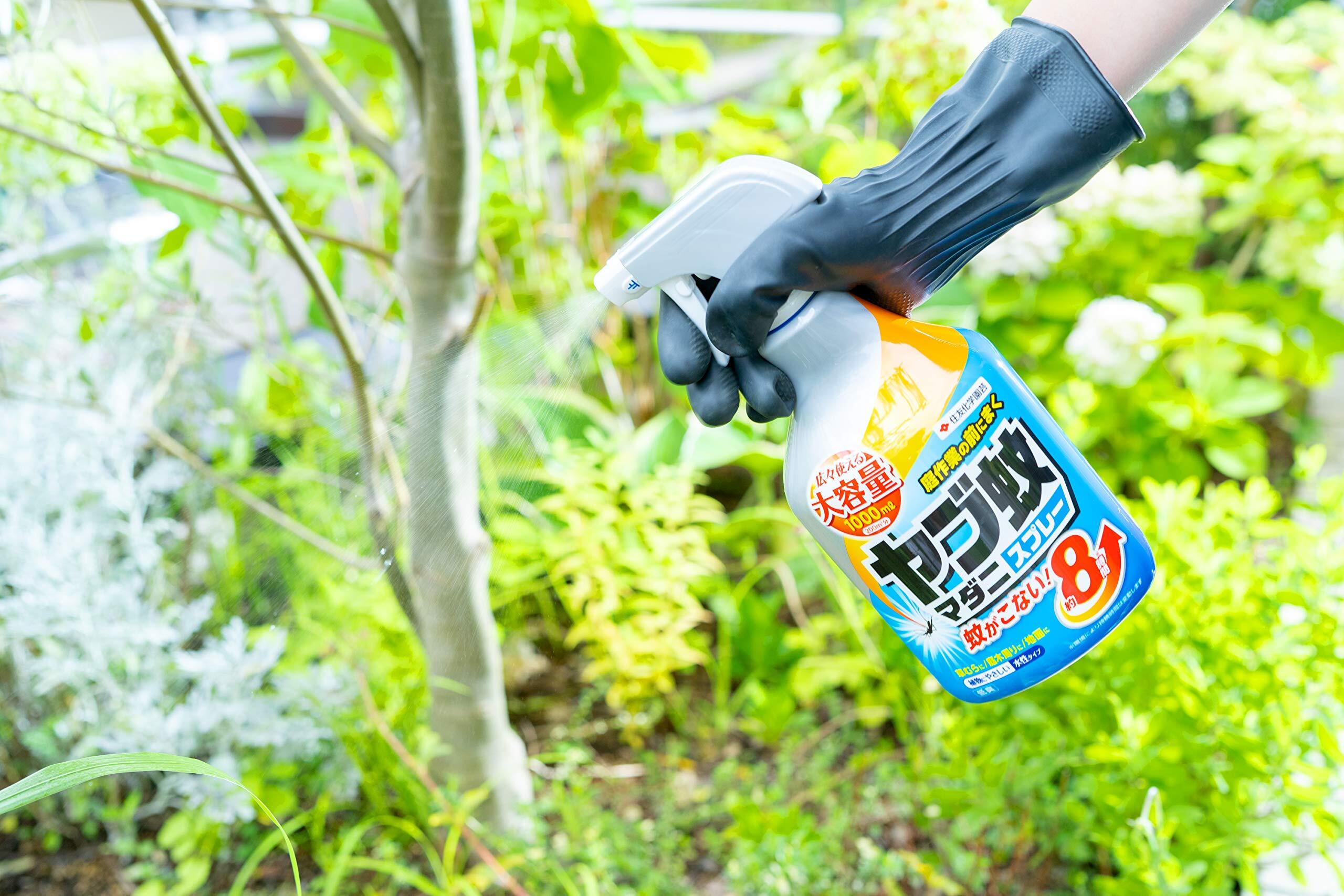 特徴:庭作業の前に草むら、庭木周り、地面などにスプレーするだけ。効きめが広がり蚊がこない効果は約8時間。