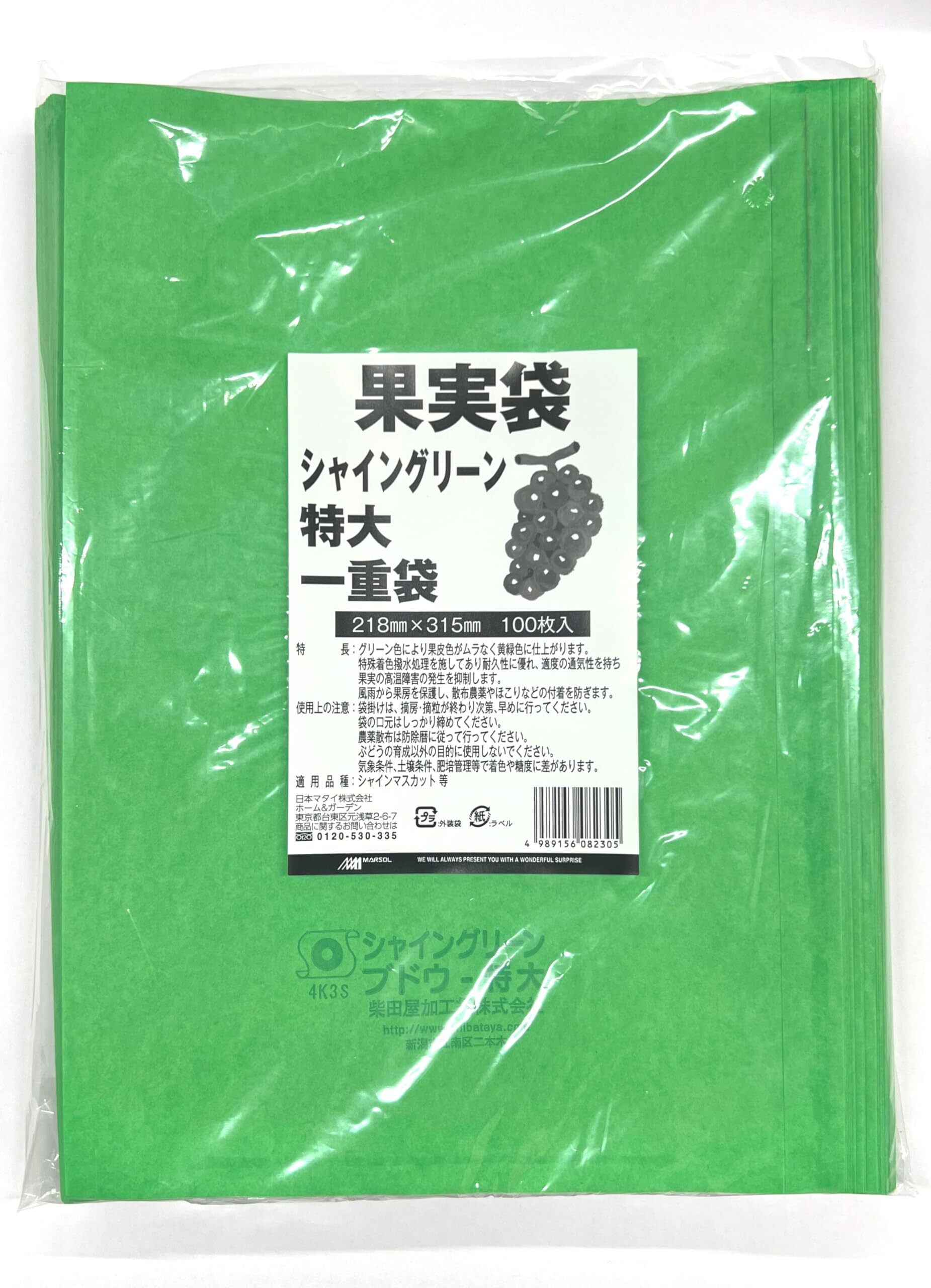 果実袋シャインマスカット用 218×315㎜ 100枚 シャイングリーン