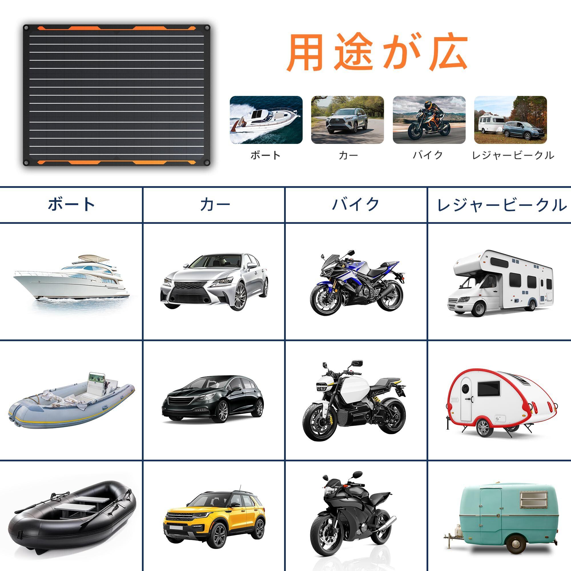 【安全な充電モード】:太陽光パネルには過充電を防ぐ内蔵型コントローラーが搭載されています。コントローラーは、バッテリーが完全に充電されると自動的に充電を停止し、電圧が低下したときに再び充電を開始します。当社の太陽光パネルシステムは、あなたのバッテリーを消耗させることはありません!