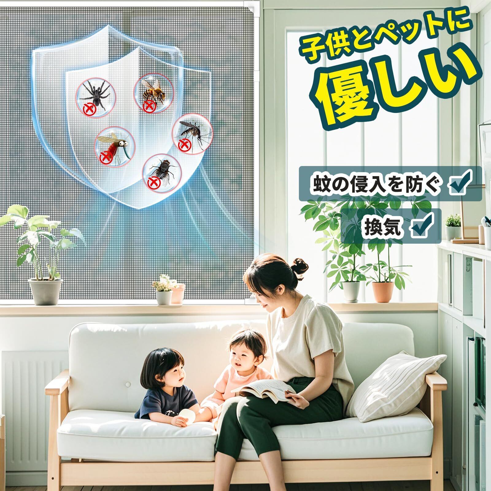 抜群な防虫・防蚊:こちらの虫除け網戸は、高密度メッシュで微細な虫・蚊の侵入も防ぎます。虫除け網戸を窓枠に設置しておくと、窓を閉めなくても、虫や蚊などの侵入を気にせず、空気の通しが良くできます。また、マグネット網戸は大きな塵や埃の侵入を防ぐ。