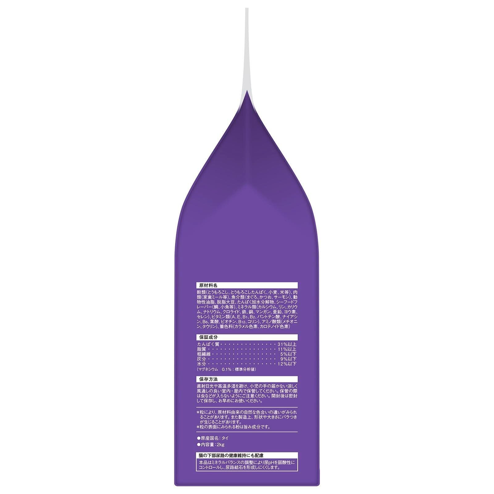 猫が大好きなまぐろとかつお、淡白な味わいの鯛、こだわりのサーモンと小魚。厳選した5種の食材を絶妙にブレンド。安心の合成着色料、香料無添加。たっぷり2Kg。